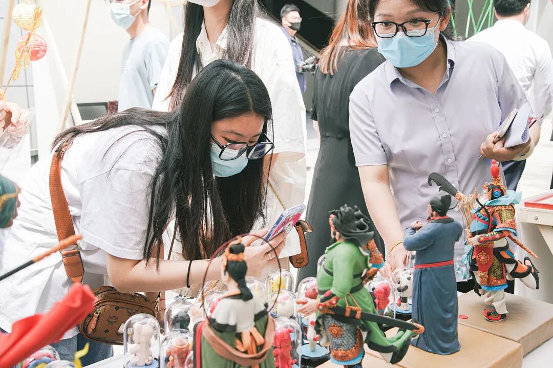 主要内容:从铺位的装饰、商品、招旗等方面进行内容包装。从氛围感角度增强市集体验,当晚还有非遗技艺的展示,汉服出游会行经市集。内容创新及产品创新,匹配非遗及自然遗产主题夜。店铺使用粗布材料,书写店名,配合宫灯,打造浓郁的传统市集味道。
