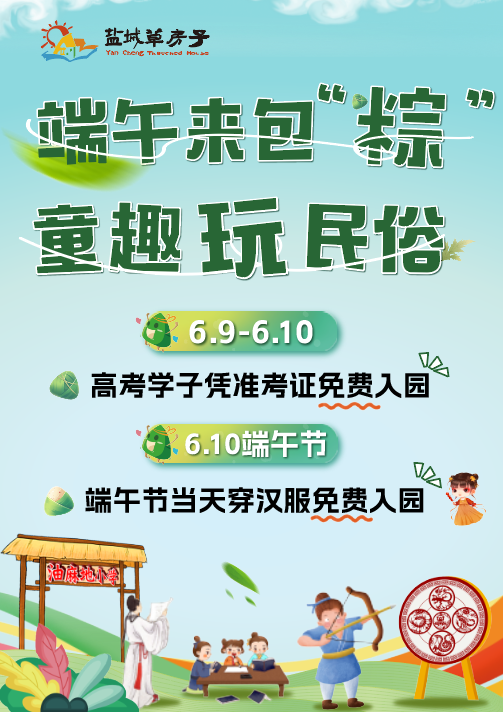 6月8日-10日 连续3天嗨玩童趣民俗 草房子祝大家端午安康 祝所有考生金榜题名 一举高中 万事OK 6.9-6.10高考生凭准考证 享门票免费 6.9-6.10高考生凭准考证 享酒店门市价半价 6.10当天身穿汉服 享免票游园 (免门票均需至售票处换票) 草房子喊你开启向往的生活 一起过端午啦! 50余项主题游乐项目任性打卡 30余场特色演艺随心看 N+美食点位上新 品西乡文脉 赏端午好戏 入住草房子酒店 感受悠闲时光 体验全园包“粽”好彩头 跟着文学诵读穿越千年时光 直接拿捏草房子高浓度 文化欢乐氛围