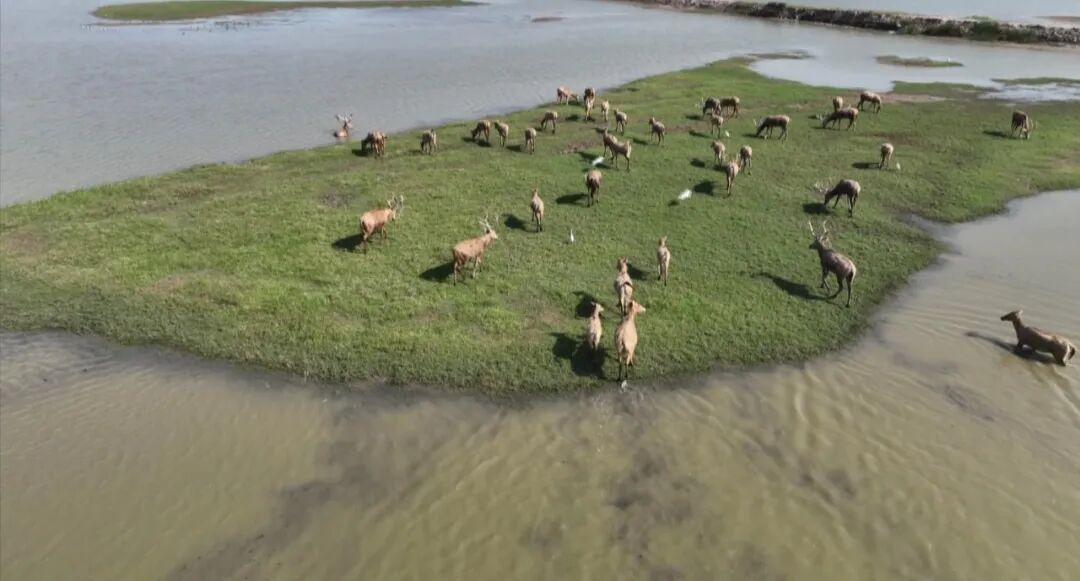 眼下,正是夏候鸟迁徙的高峰期,大丰川东港美丽海湾野生动物栖息地修复区也迎来了首批“房客”。工作人员在野外巡护时发现一百多只国家一级保护鸟类黑嘴鸥在这里安家落户,繁衍生息。 江苏大丰麋鹿国家级自然保护区管理处野生动植物保护与利用博士刘彬介绍:“这个区域是美丽海湾建设栖息地恢复的场所,除了可以看到很多碱蓬,也有很多鸟类选择在这儿栖息和繁殖,比如像黑嘴鸥、一些鸻鹬类鸟类,四周有很多环形水沟,能够有效防止地面的捕食者到这里来偷蛋,捕食巢能够有效提高这个巢的繁殖率,很多鸟类会选择碱蓬作为巢材。” 这一片是为了保护麋鹿和鸟类专门修复打造的一块新的栖息地,紧邻大丰麋鹿国家级自然保护区。通过改良湿地土壤、改造湿地水系,更利于盐蒿和碱蓬这些湿地先锋物种的生长,湿地生态不断完善。由于水草丰茂,生态环境优渥,这里成为野生动物的新家。 刘彬说:“从第一年零零散散的几十只,到今年观测到一百多只,已经形成了黑嘴鸥的繁殖小种族。黑嘴鸥对栖息地的要求很高,这说明我们湿地保护是卓有成效的,特别是护花米草的治理,让盐蒿这类本土的植物更适宜生长,为黑嘴鸥的繁殖创造了良好的环境。” 区自然资源和规划局工作人员秦丹丹说:“我们也是首次探索实施了‘生态+农业’的修复方式。采取稻谷部分收割的模式,一部分稻谷可以作为鸟类的食物来源,同时谷物售卖产生的经济收益也作为生态修复工程的后期管护经费,从而实现了‘生态+农业’循环互补的良好局面。其次是创新引入社会资金参与。先后协调引入了风电项目生态补偿资金共1900万元,将占用生态资源的补偿资金真正用到生态修复上,提升了资源补偿资金利用的长期价值,同时也为今后生态修复工作的推进奠定了良好基础。” 我区的湿地生态环境越来越好,麋鹿数量也逐年增多,成为全球最大的麋鹿种群基地,总数超过7000头。鸟类分布283种、兽类12种,其中国家一、二级重点保护动物52种。每年有数百万只候鸟在这里繁衍生息。 好生态带来好风景,观鸟、赏鹿、看日出这些文旅热点也应运而生。去年国庆期间,来我区美丽海湾看日出火爆全网。日出海湾,一个天然景区自然而成。曾经无人问津的荒滩转型成为炙手可热的景点。在这里,游客们不仅可以享受到清爽的海风、新鲜的空气和美丽的日出,还能在各种精彩纷呈的活动中沉浸式体验户外露营的“诗和远方”。 游客沈耀阳说:“在网上看到日出海湾,看起来风光很好,决定来游玩,感觉不虚此行,景色非常不错、视野很开阔,空气和环境很好。”