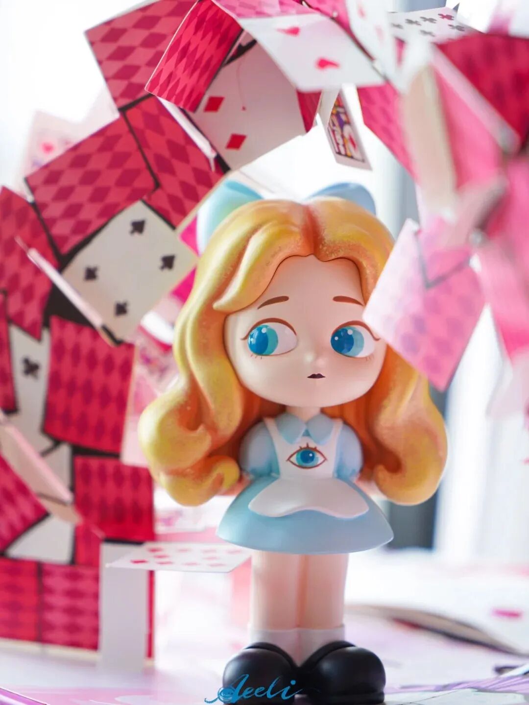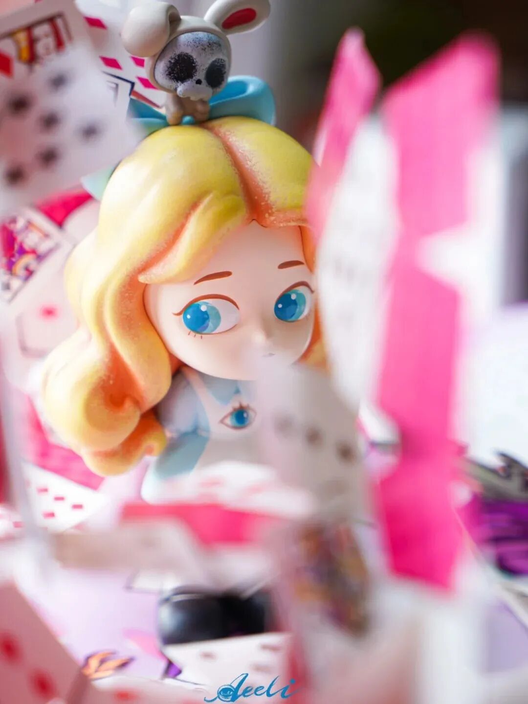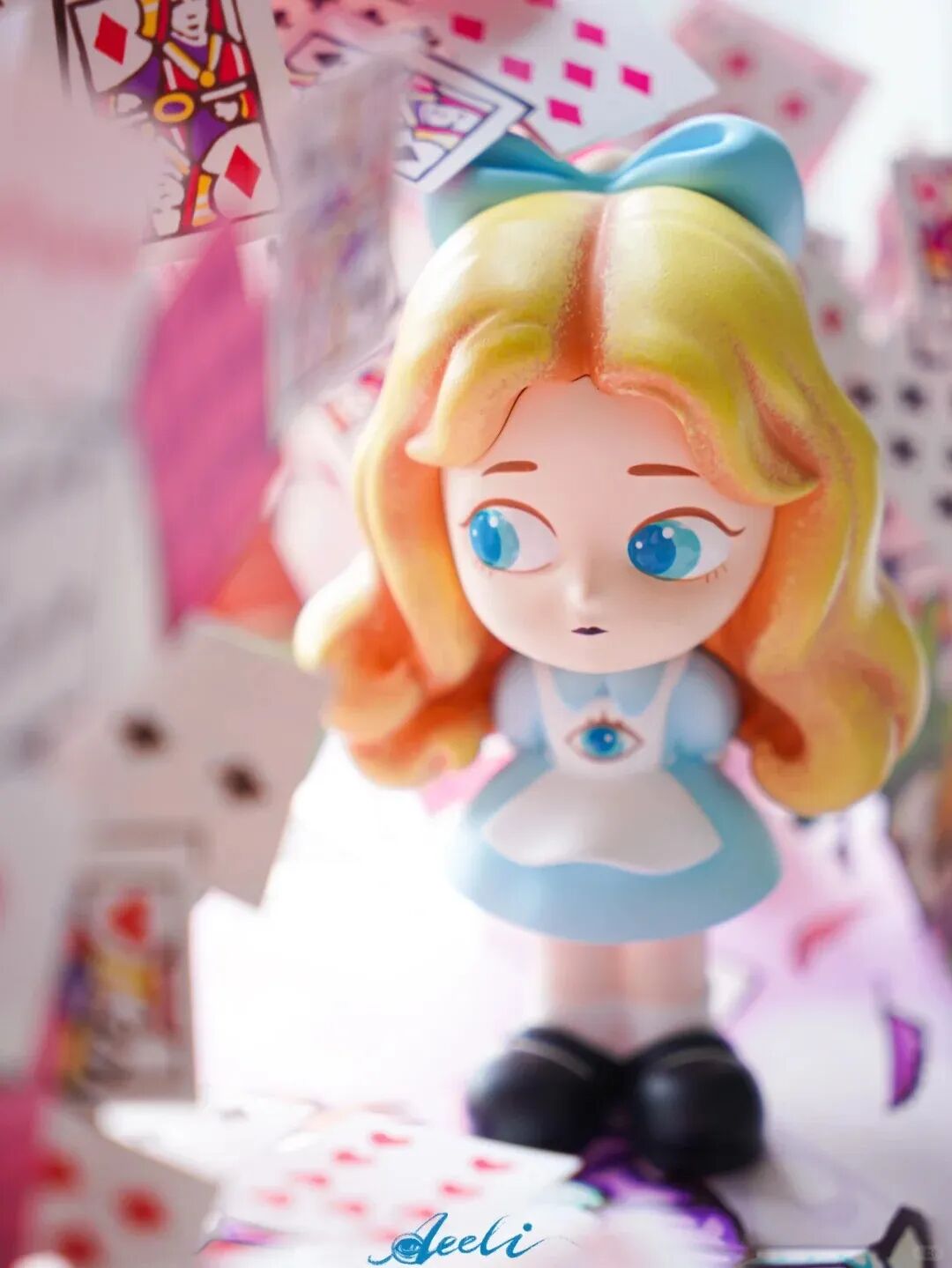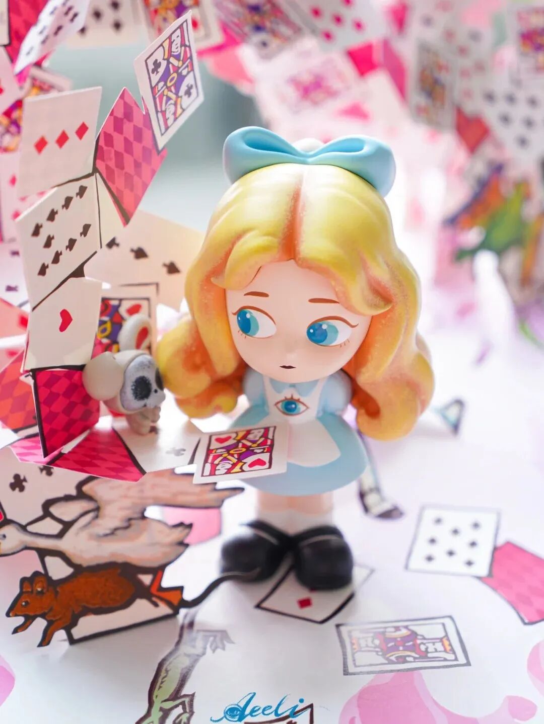 在快闪店内除了精彩的艺术展,艺术家赵绮莉也带来了她精心设计的潮玩。精美的玩具和艺术展的内容息息相关,不同主题可爱、神秘的爱丽丝总有一款能够打动你。