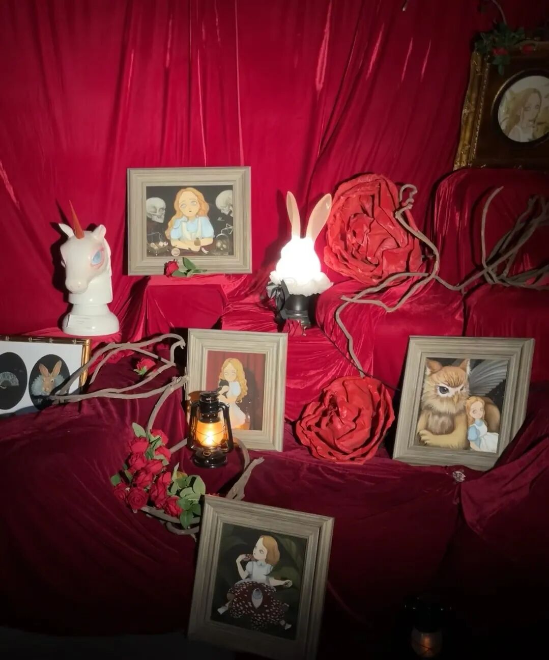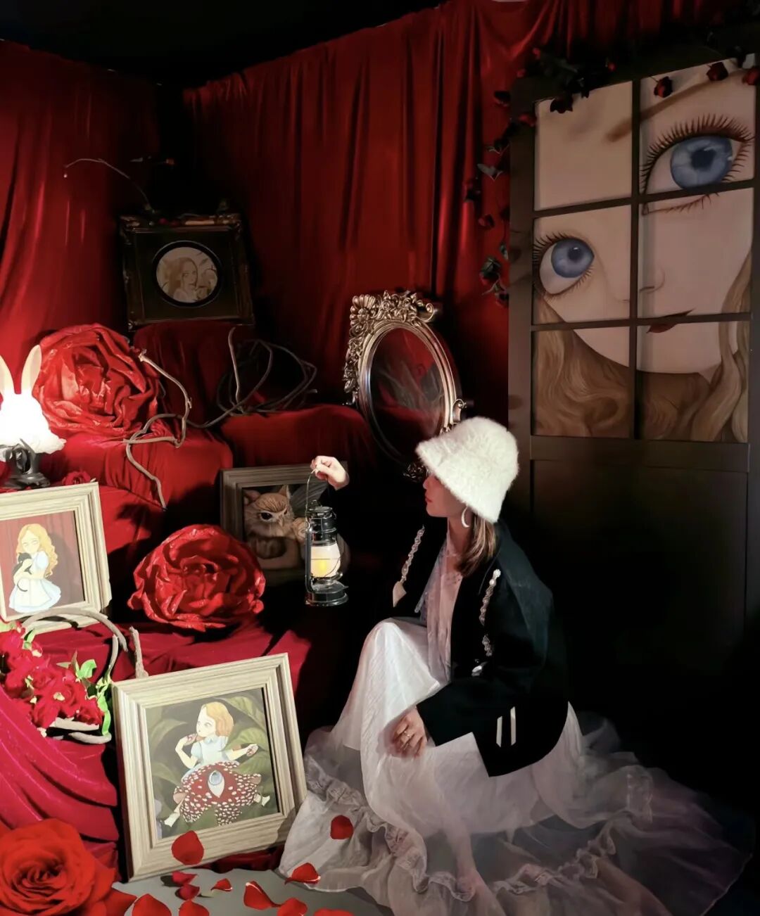 “我希望突出这个故事梦一般的跳跃性,画面像梦一样蔓延。” ——赵绮莉 5月20日,串场之眼将携手莉莉丝梦游仙境艺术主题快闪店一同亮相。90后青年艺术家赵绮莉将带来她的主题展《莉莉丝梦游仙境》。 《爱丽丝梦游仙境》是英国作家路易斯·卡罗尔于1865年出版的儿童文学作品。故事叙述一个名叫爱丽丝的女孩从兔子洞进入了地下的神奇国度,遇到了许多奇怪的生物并展开了一段奇遇,最后发现原来是一场梦。 爱丽丝的梦境是虽然跳跃性的,而展出的艺术家赵绮莉在作品展示时是一个整体。画的内容与画框、画与画之间、空间布局与光线投影都有关联,给观者恍惚间身临其境的感觉。