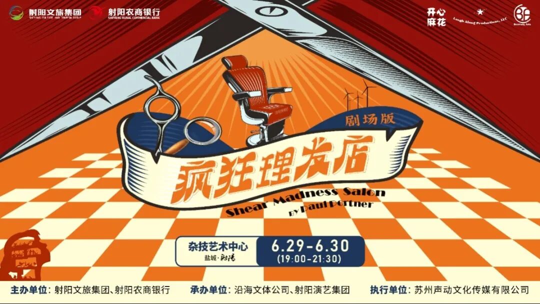#“喜剪吹”沉浸剧场 来射阳啦 隐藏在舞台上的“剪刀手”在全场两百人众目睽睽下作案。 凶手锁定在出入理发店的嫌疑人之中,其中有金牌理发师,也有神秘顾客。全场观众都被卷入一场扯淡的谋杀案,这里不再是简单的“你看我演”…… 一起欢乐投凶吧! TWO. #爆笑开场 全程高能 剧目亮点 #全球超1250万人为之疯狂 #风靡欧美半个世纪的票房传说 #创吉尼斯世界记录 #上海最火爆的沉浸式神作 #凶案? #疯狂理发店 #收入全球喜剧名人堂 ...... 悬疑与幽默 沉浸式体验 每一个细节,每一个角落 都可能是解开谜团的关键 这不仅仅是一场演出 更是一次全方位的沉浸式体验 上一秒看戏 下一秒破案 多重结局 欢乐投凶 开心麻花 《疯狂理发店》 2024年6月29日-30日 >>> 19:00-21:30 就在射阳杂技艺术中心 让我们一起 化身为目击证人 准备好跟随“狗头侦探” 开展一场爆笑的探案之旅! 6月20日 门票开售 银企联动 倾情呈现 ↓↓↓ 主办单位: 射阳文旅集团、射阳农商银行 承办单位: 沿海文体公司、射阳演艺集团 执行单位: 苏州声动文化传媒有限公司
