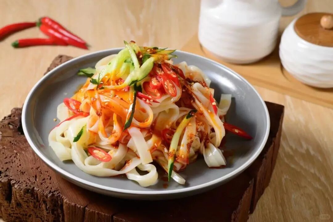 在夏天,凉皮凉面是每个小吃店必不可少的招牌。 口感Q弹爽滑的面皮,搭配爽口的新鲜黄瓜丝和胡萝卜丝,均匀搅拌在或甜或咸的酸辣调料汤汁里,露出诱人的模样。 好吃的灵魂就在它的神奇料汁里,每家的秘方各不相同,欧风花街的祖奶奶咸口甜口都有,辣味是一绝,新弄里的老潼关则更有陕西味道,别具风味。 吃一口酸甜口的凉皮,清爽不腻;尝一口酸咸口的凉面,辣爽清新。就这样,酸咸甜辣共同组合成了盐城的缤纷夏季。