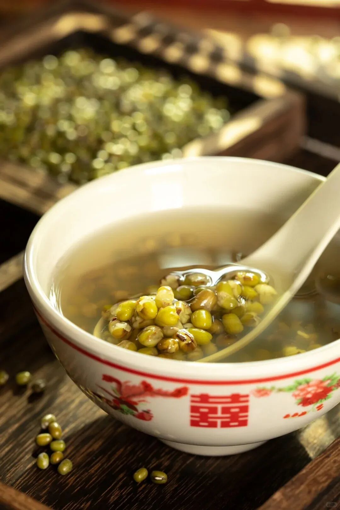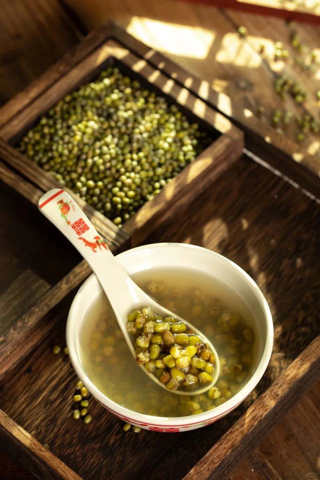 抱一颗肥硕清脆的大瓜回家,当菜刀落下的时刻,薄皮顺势裂开,就说明挑到了一个“报恩的西瓜”。 切成几瓣可供多人分享,一分为二挖着吃则是2个人的欢乐时光。 除了西瓜,下雨的夏天,还适合在家喝一碗上头的绿豆汤。 早早地将清洗后的绿豆浸在水中,待到下午,便将水和绿豆一同放入锅中煮上40分钟,绵绵的绿豆沙就化在了汤中,撒上适量的白糖,甜蜜的绿豆沙就做好了,实在美味。
