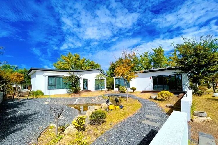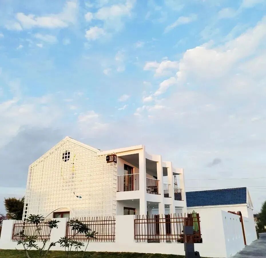 潮间带艺术村的民宿,不仅“移植”了当地特色的茅草顶,也保留了海滨民居原有的样子:石子路、矮篱笆、家家户户的小院里都有鲜花、门口还有新鲜的蔬菜……淳朴之中更带着古色古香,让整个艺术村能够和谐地融入当地湖光景色之中,充满自然与人文交融的魅力。