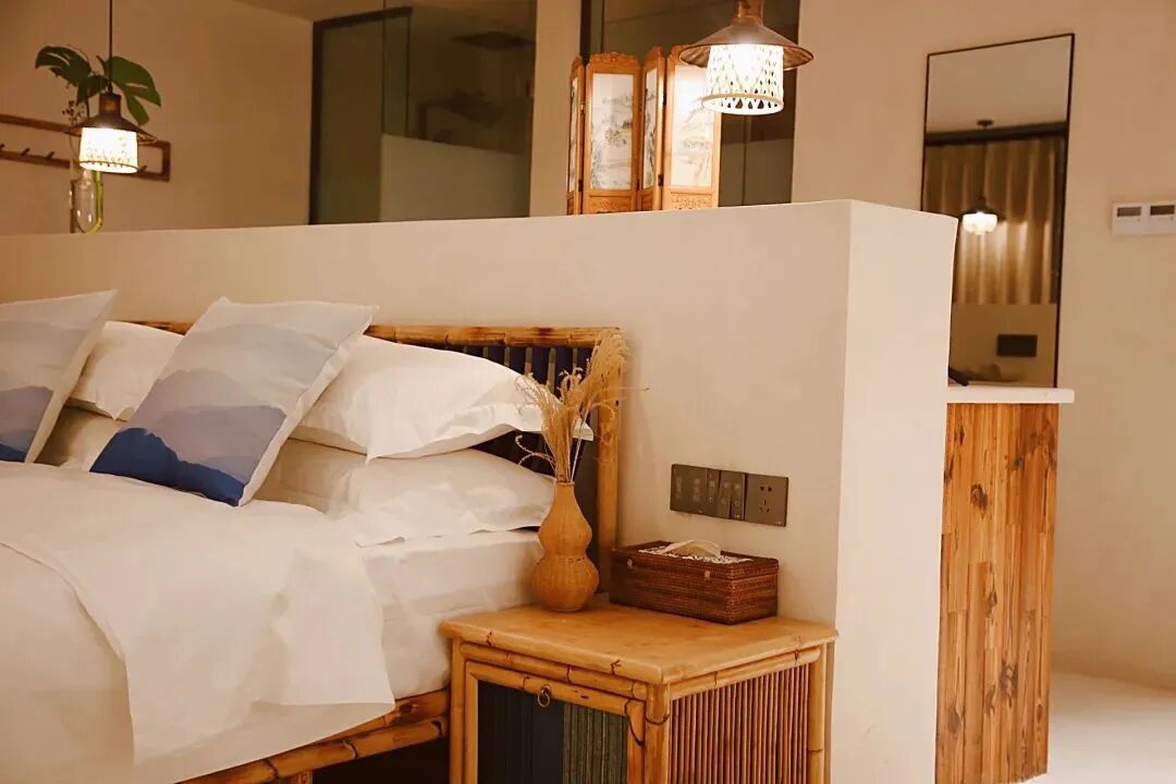 茧爱民宿以原有民房别墅为载体,采用清新自然的设计风格,打造了风格迥异的精致客房。从细节至整体,处处都体现了桑蚕文化与现代潮流的碰撞。