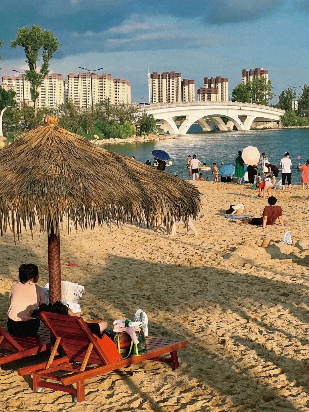 每个进入沙滩的小朋友都可以免费捞小鱼
