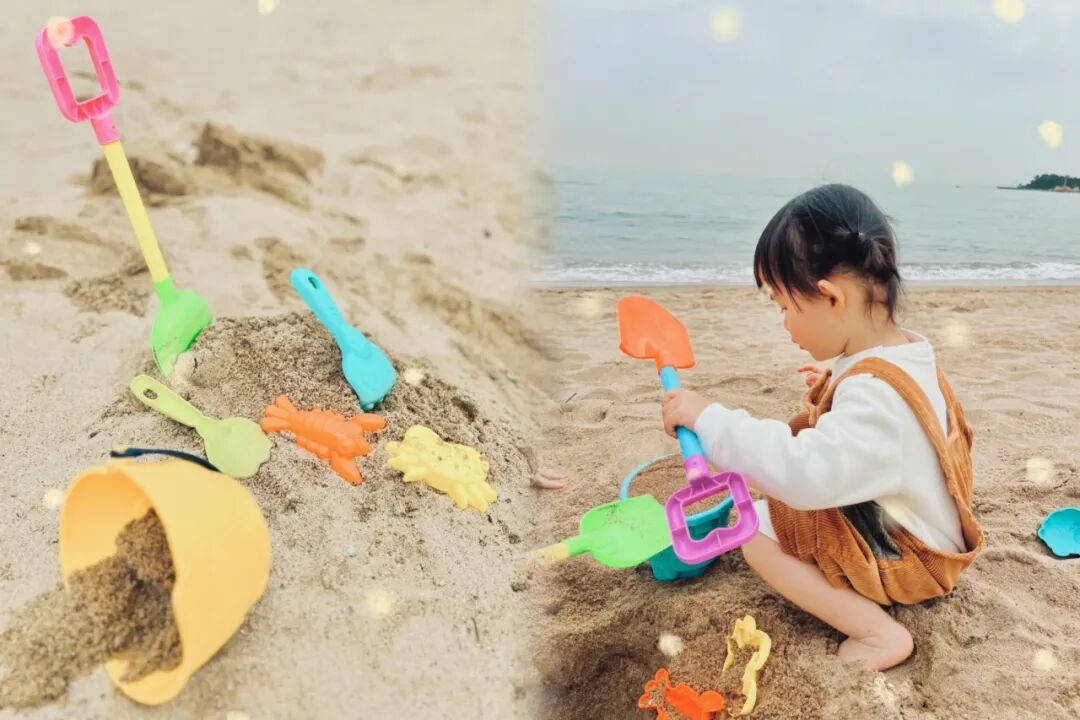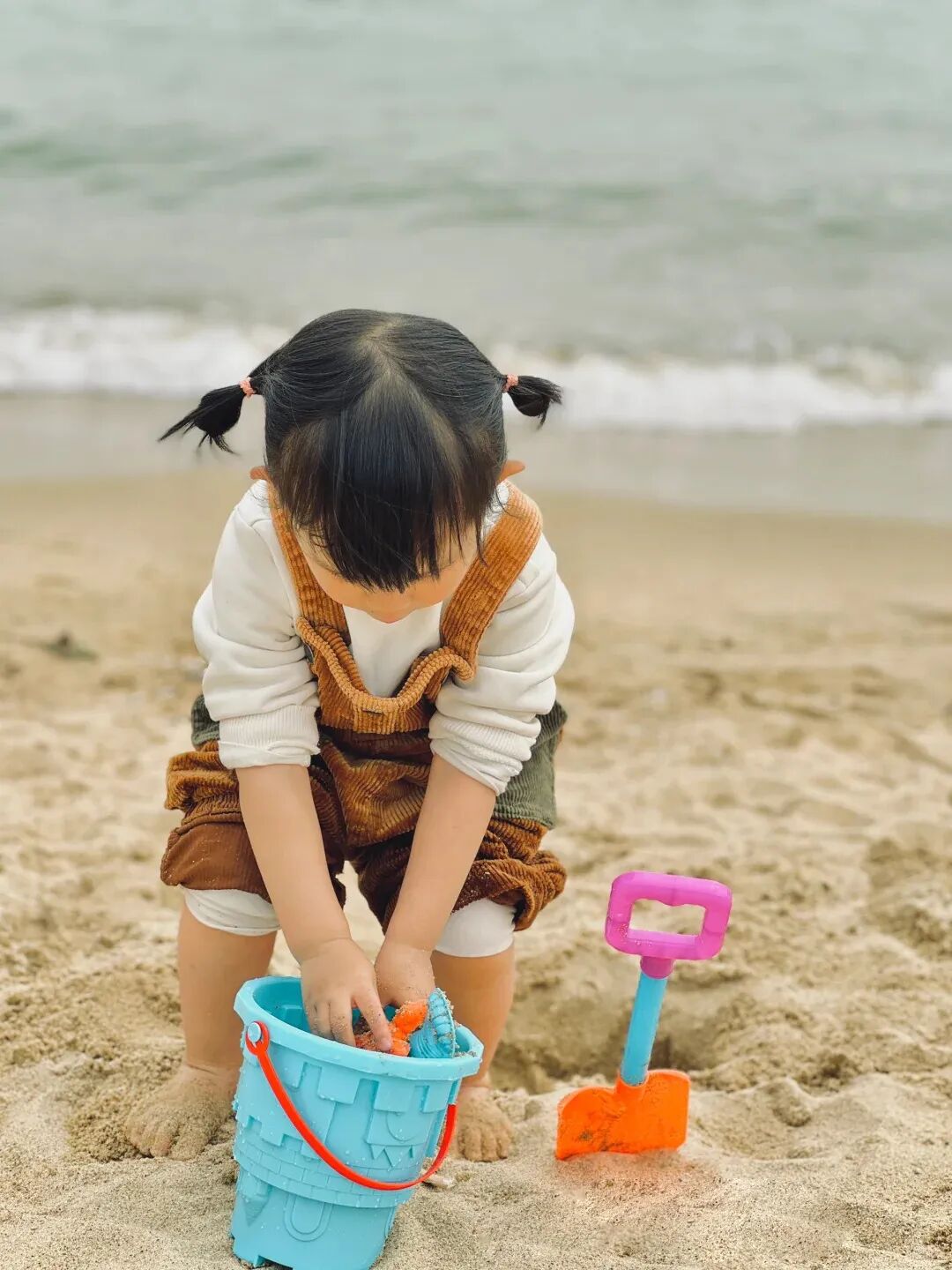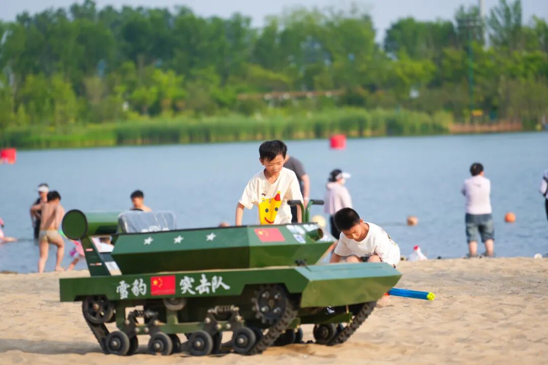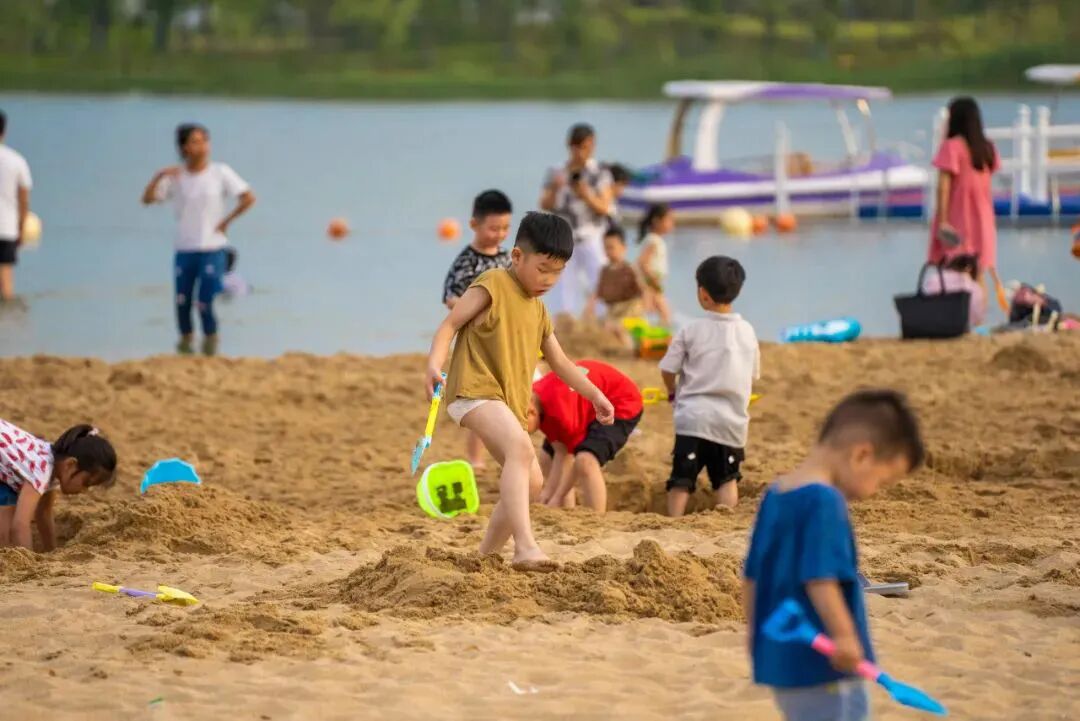 沙滩永远是孩子的天堂 玩水、挖沙、开挖机 小朋友各个卷起裤脚、光着脚丫 在沙滩上肆意奔跑,你来我往好不热闹