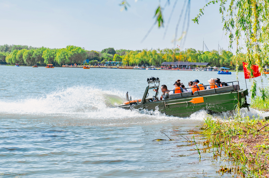 水上摩托艇风驰电掣在湖面上 感受马达轰鸣、浪花飞溅的快感 快艇、旋转飞盘 “水上飞鱼”、水陆战车……等水上项目 自由穿梭在落霞湖中 收获“驰骋”水面的快乐 看浪花飞起的瞬间 闲暇时光中,避开阳光的照耀 乘坐摇橹船躲进芦苇迷宫中 将自己藏在在葱葱芦苇荡中 夏日中与水为伴、与鱼虾为友 挽起衣袖,化身捕鱼达人 或是带好装备,开启专注的钓虾之旅 ▷游玩地址:大纵湖景区