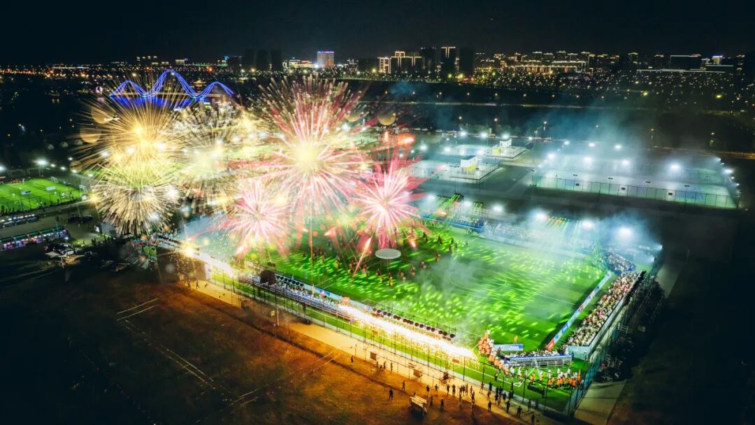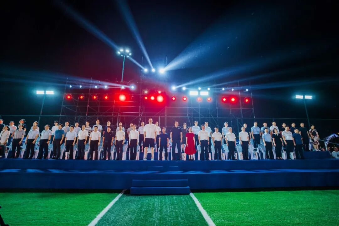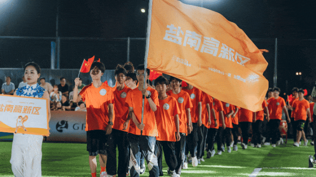 裁判员代表、运动员代表庄严宣誓后。随着启动键的按下,在人们的欢呼雀跃中,夜空中绽放出多彩的光芒,“Fighting一夏·当燃热爱”—2024盐城市第二届社区超级联赛正式开始!