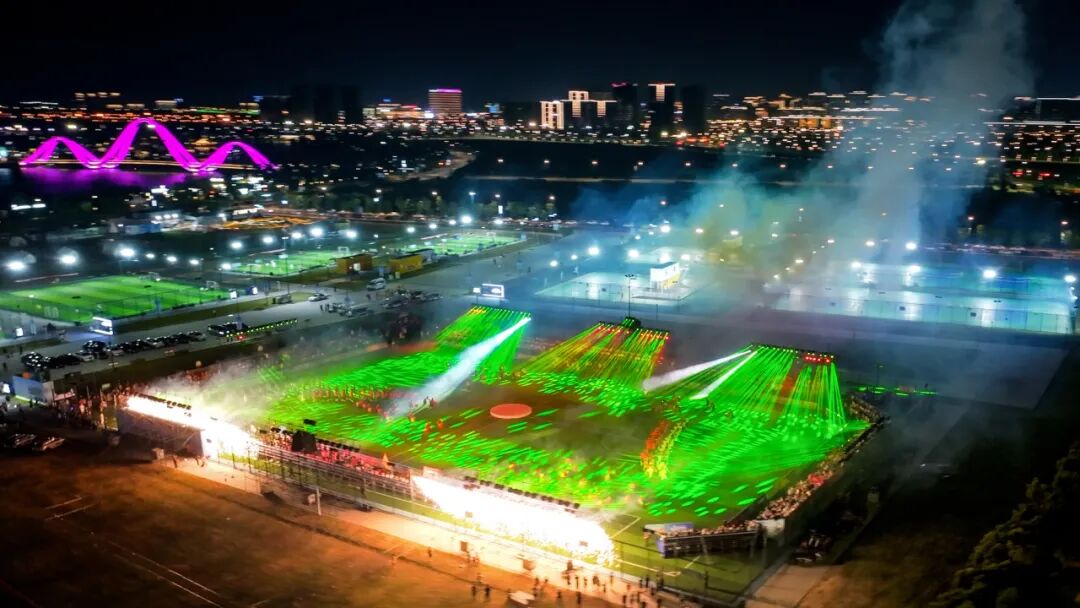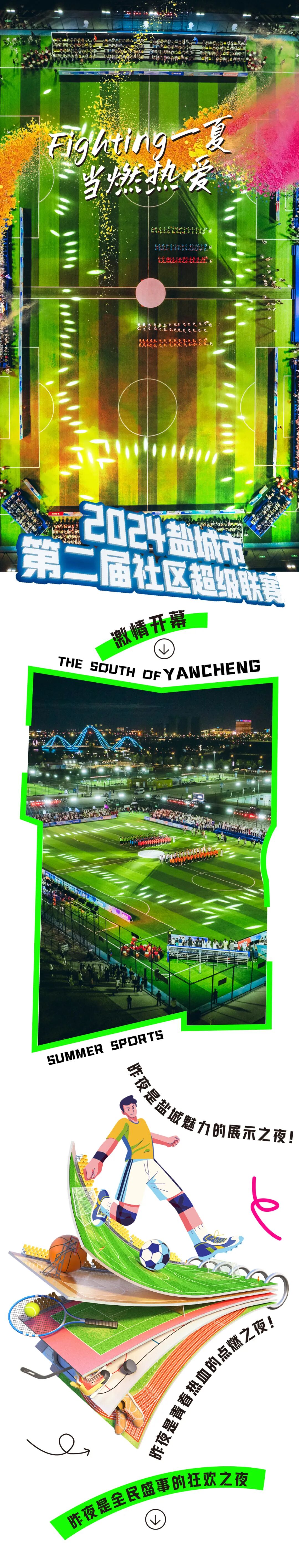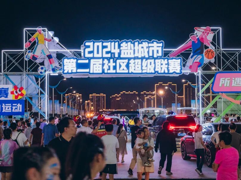 2024年7月27日晚 盐城各地的宾朋欢聚在盐南青年体育公园 千万人共享2024盐城社区超级联赛开幕式欢乐盛典 7月27日-8月31日由来自盐城各企事业单位、社区、学校的100多支队伍,近1500名球员将分别进行篮球、足球和网球激烈角逐和激情碰撞。