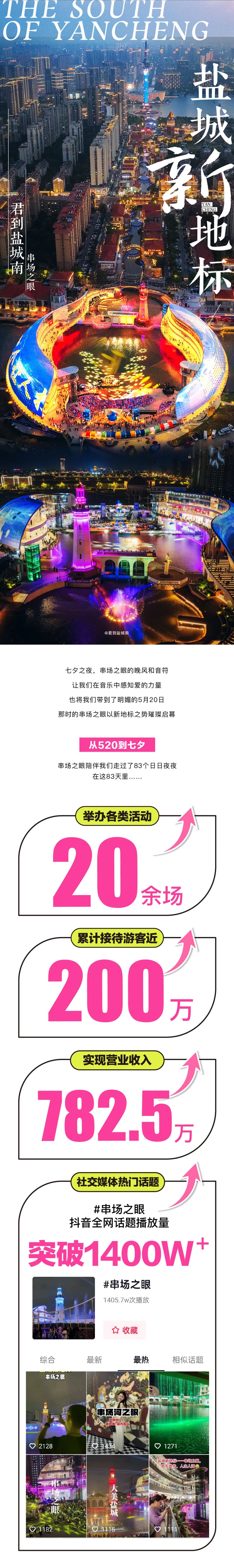 精心打造的“卡那灯塔”“水幕秀”等特色社交体验场景,“欢乐一夏街有你”“MUSIC一夏 君到盐城南”“周末就到串场之眼听歌吹风”等20多场次的活动吸引了无数市民游客前来打卡。
