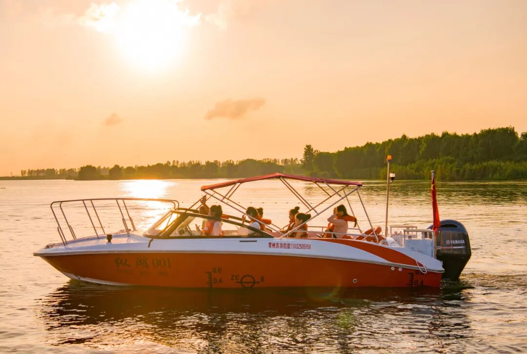 在快艇上,等一场纵湖落日