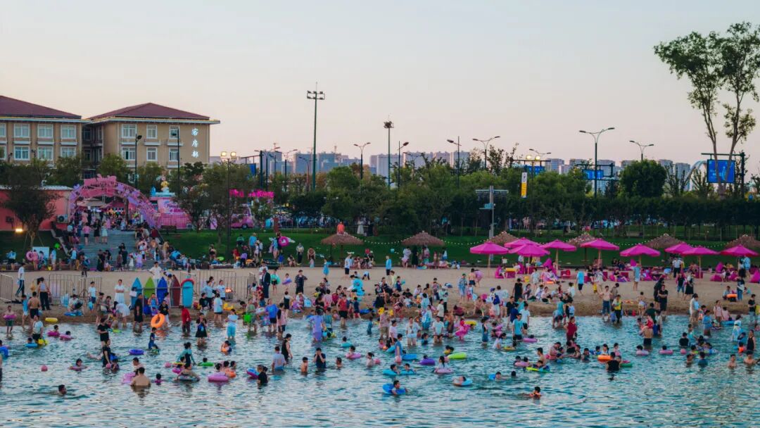 盐城2024的夏天,人们带着手环走向南海Pink沙滩,游泳、捞鱼、挖宝藏,还目睹了打铁花、火壶的震撼;