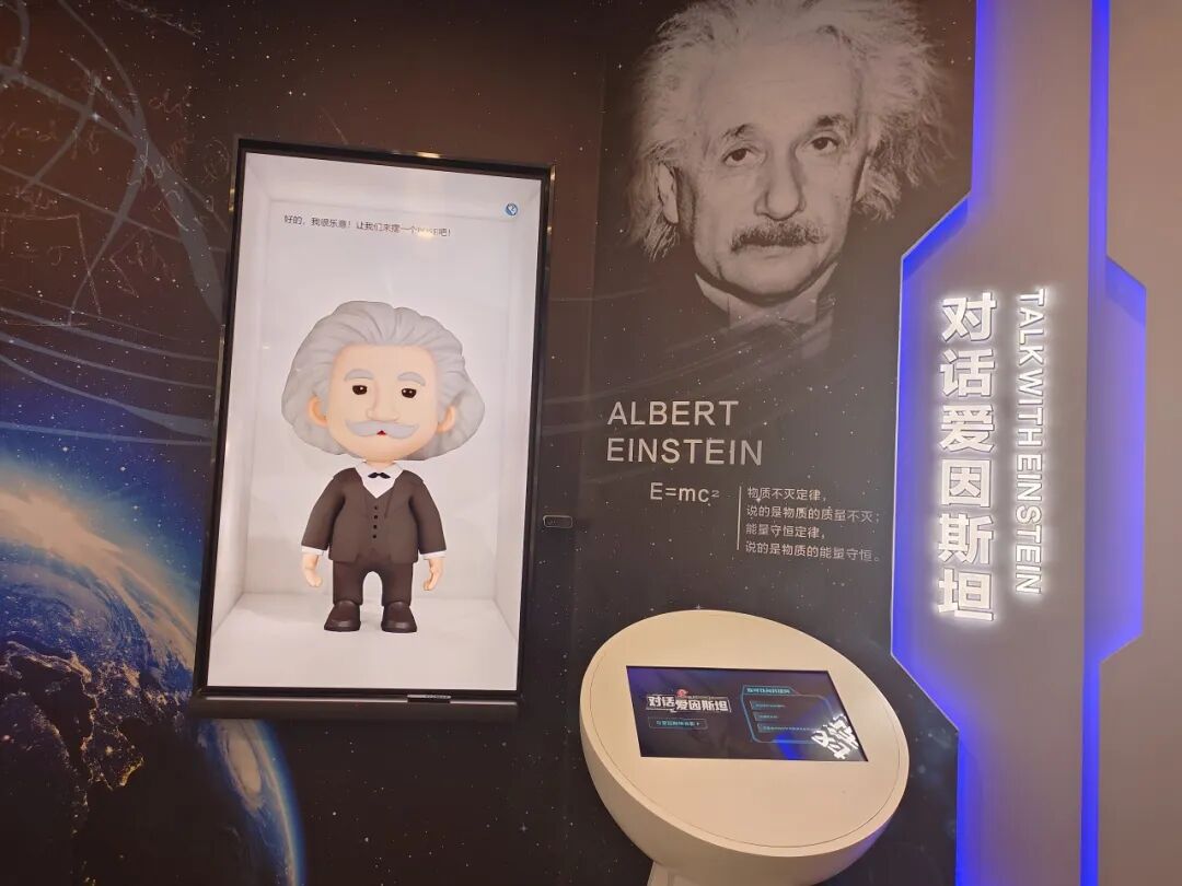 通过移步换景的互动装置,可以体验各种形态的日食,随着他们所处的位置变化即可观看到日偏食、日全食以及日环食; 对话爱因斯坦 借助先进的AI技术,跨越时空界限,与科学巨匠爱因斯坦,展开一场思维碰撞的对话; 开启奔月之旅 不仅可以亲身体验火箭发射的震撼过程, 还可以通过丰富的科普内容,让您对中国火箭有一个全面而深入的了解,感受中国航天事业的蓬勃发展; VR站立飞行器