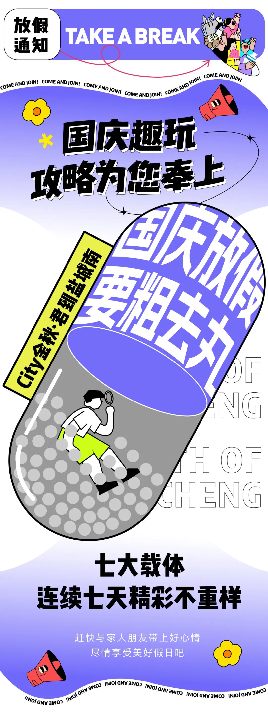 夏日的尽头是仍在酝酿的秋天 喝过秋天的第一杯奶茶 看过秋天的第一场电影 来花样年华景区进行 一场远离喧嚣拥抱自然的露营 是拥抱国庆假期最好的方式 活动日期/Time 2024年10月1日-10日7日 活动地点/Adress 花样年华景区