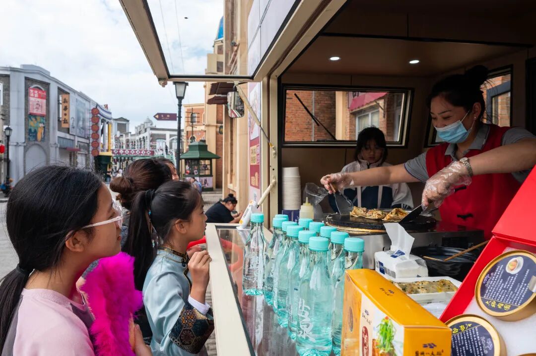 “听说这边有一条民国风情街,还有精彩的喜剧表演,我们就赶过来了。”来自苏州的潘文语刚逛完大纵湖,就迫不及待地拉着好友来看一看剧工厂的魅力。“这里的建筑都特别有年代感,演员们的表演也富有感染力,仿佛将你拉回那一段独特而极具魅力的历史,沉浸式体验民国风情。”