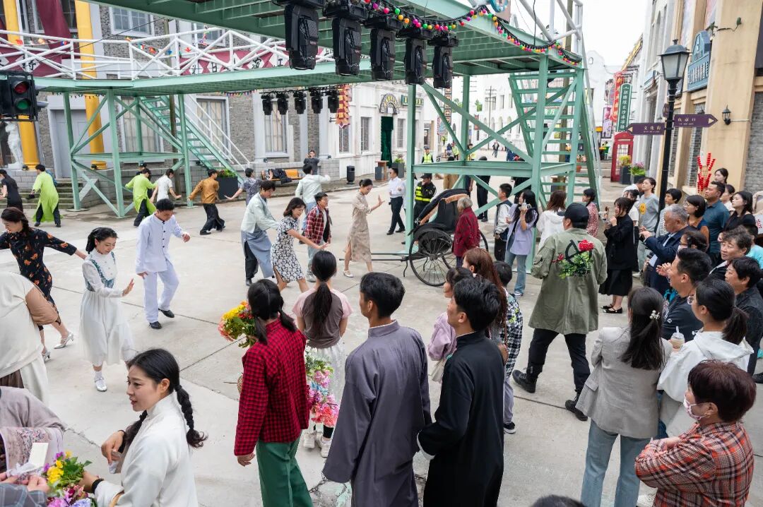 走进燕舞(大纵湖)剧工厂这条充满民国风情的街道,仿佛穿越时空,置身于那个风云变幻、充满魅力的摩登时代。黄包车、民国画报、斑驳的墙壁,无不诉说着往昔的故事。街头巷尾,身着民国服饰的演员们穿梭其中,演绎着那个时代的爱恨情仇。