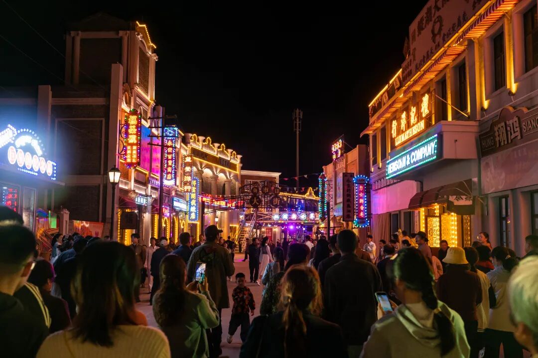 以洋行百货、市井美食、歌舞娱乐、金融文化为主题,燕舞(大纵湖)剧工厂打造四条实景街道,通过灯光布设、店招改造,增设门头等方式重塑高颜值民国场景,呈现全新的视觉效果。