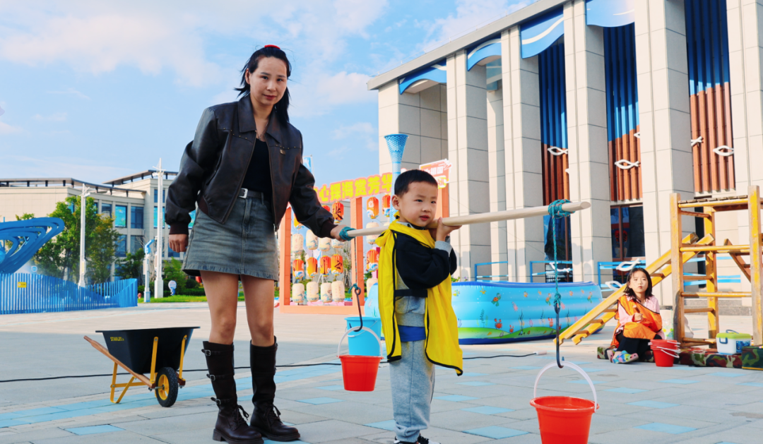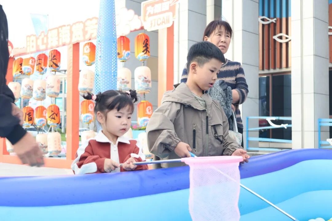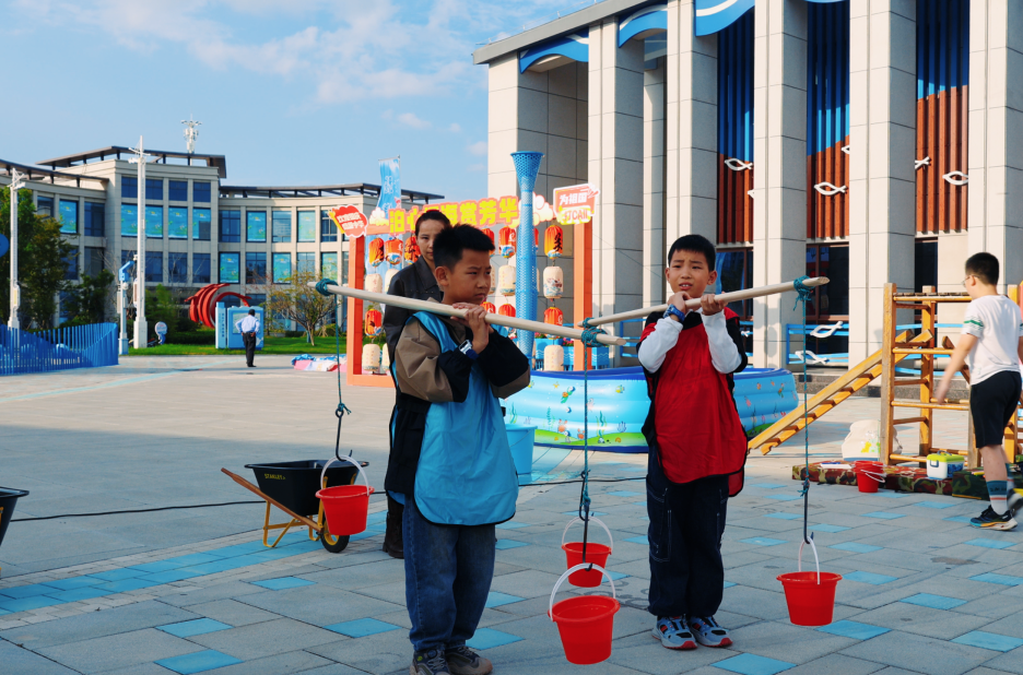 01 体验渔家生活 共度欢乐国庆 趣捕捞 孩子们拿起小渔网 在规定时间内 获得海洋球数量最多的获胜 渔味十足 织网比赛 一张张渔网 仿佛将我们带回了古老的渔家时代 小朋友们好奇地学习织网 眼中闪烁着对未知世界的好奇与向往 织网比赛 担渔获 寓教于乐 小朋友们在景区可以体验到 “挑扁担” 在家长的帮助下将水桶 用扁担在规定时间 挑到指定地点 并且不让水洒出来 用时最短的小朋友获胜 浓浓亲情 捡小虾 小虾、小蟹、小海草... 一次次的推车奔跑、一次次的拾捡 小朋友们拼尽全力、争分夺秒 争夺属于自己的每一只“战利品” 拾捡最多的小朋友获胜