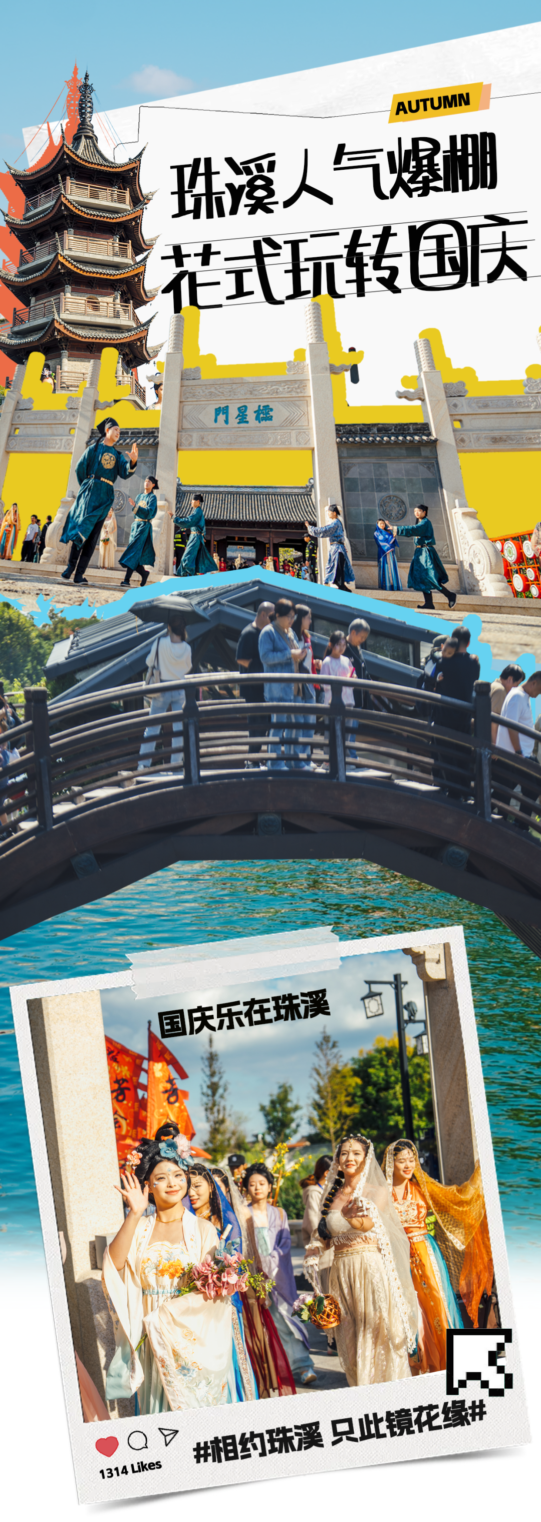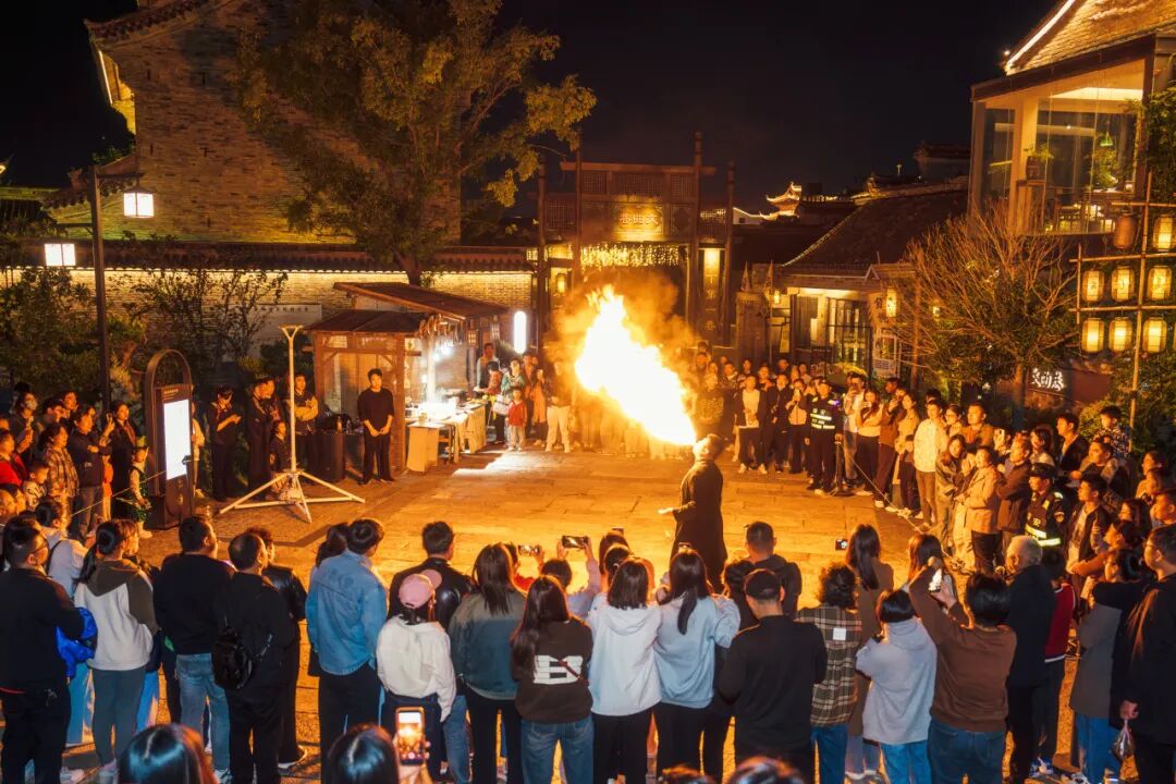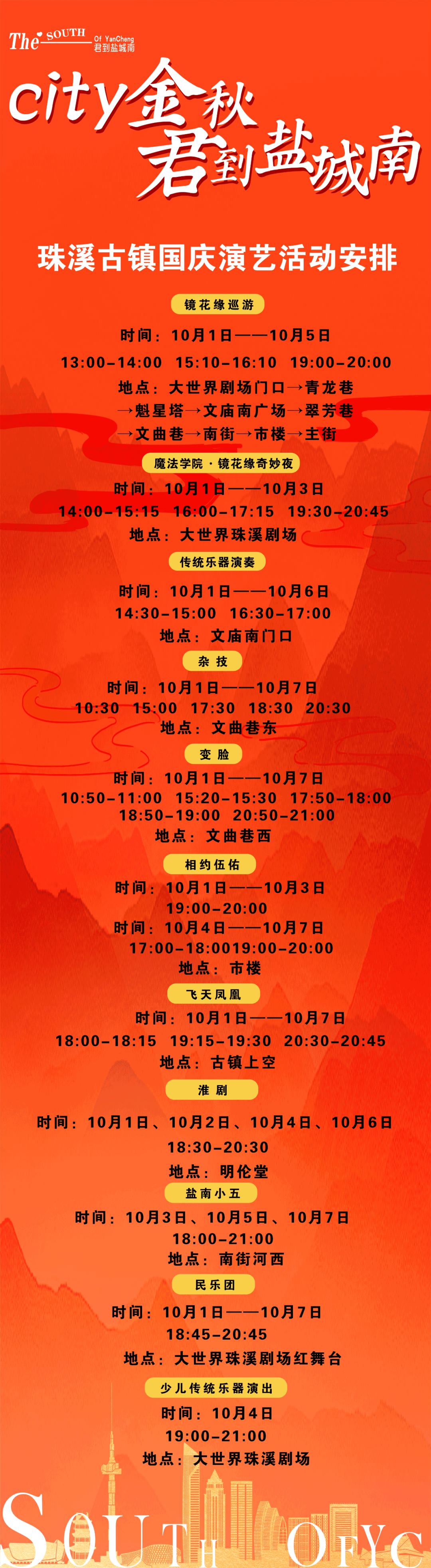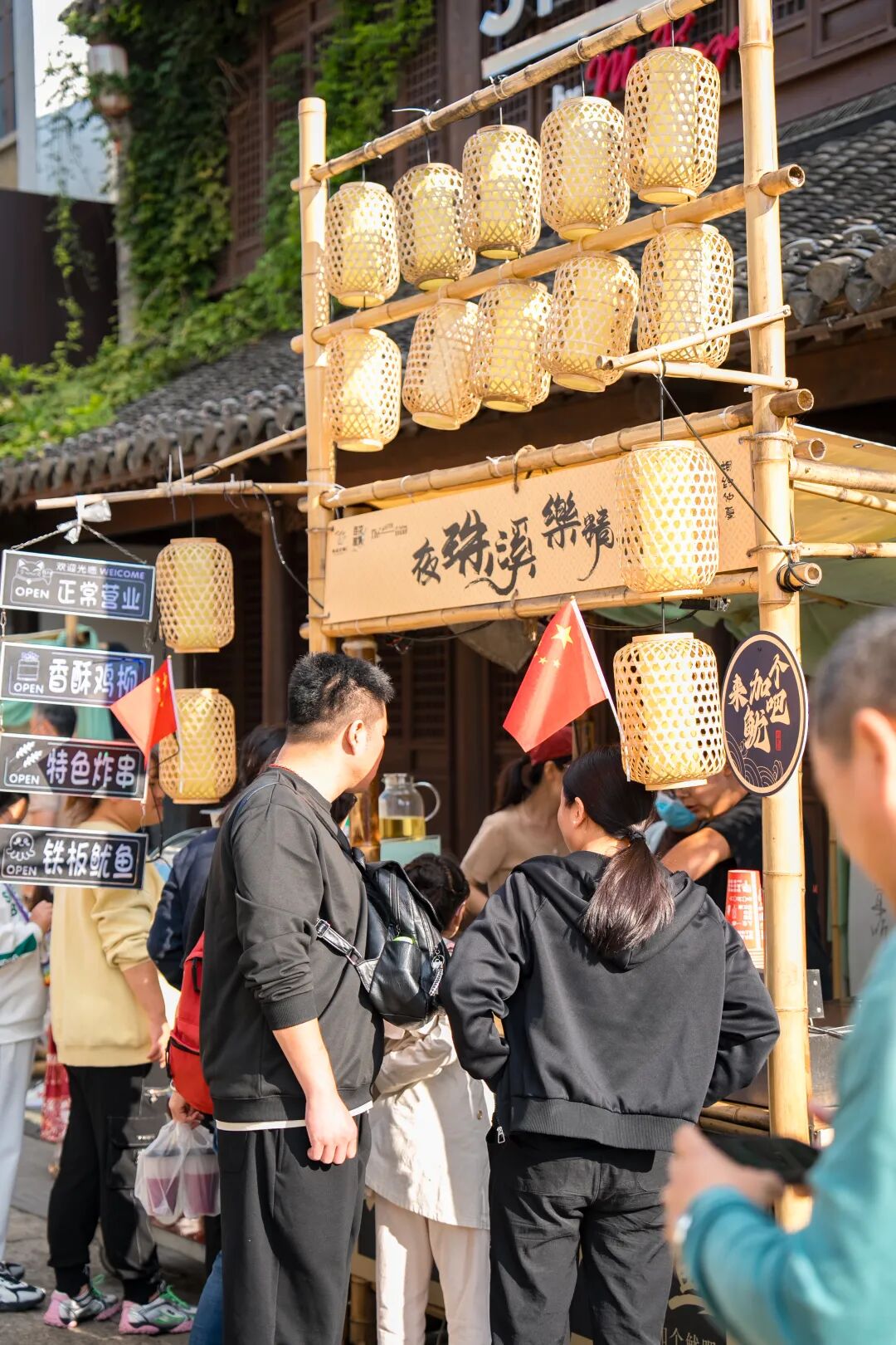 而当夜幕降临,淮剧的悠扬唱腔、民乐团的精彩演奏、杂耍变脸的精彩瞬间,接连开场,让人目不暇接。一步一景,处处有戏,共庆祖国华诞,珠溪古镇的“氛围感”直接拉满!