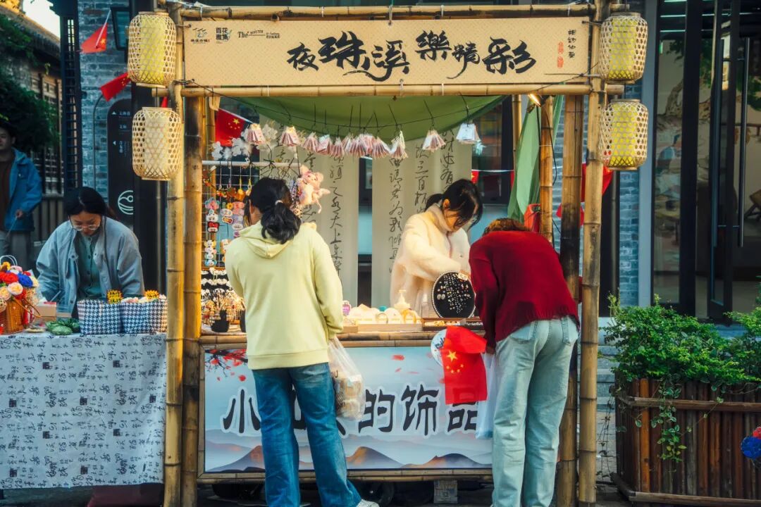 古镇街道两侧的集市里汇集了各式各样的地道美食,彩绘Diy、来市集里充个能,一路逛吃,一路感受人间烟火气。