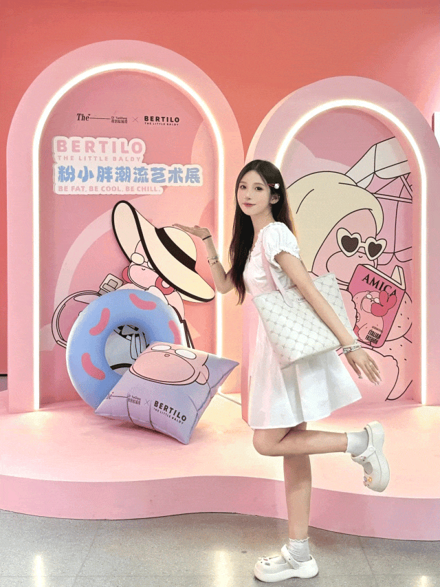 Bertilo粉小胖由意大利艺术Bertil Butturini以自己为原型,和他的中国妻子插画师Jingo Li共同创作。自5月展出以来,粉小胖得到了盐城朋友们的喜爱,吸引了众多达人的打卡分享。