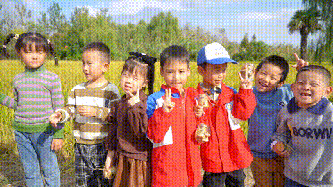 他们在田间地头,学习如何收稻子、打稻花、扎稻草人,感受传统农耕文化的魅力与乐趣。