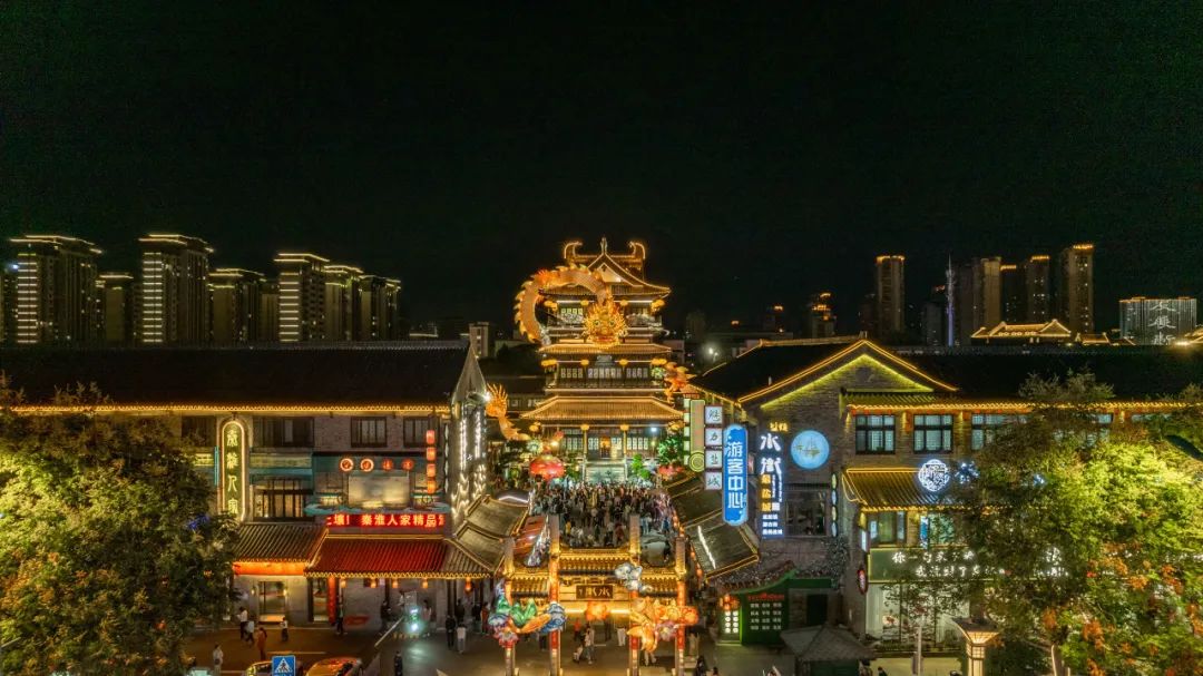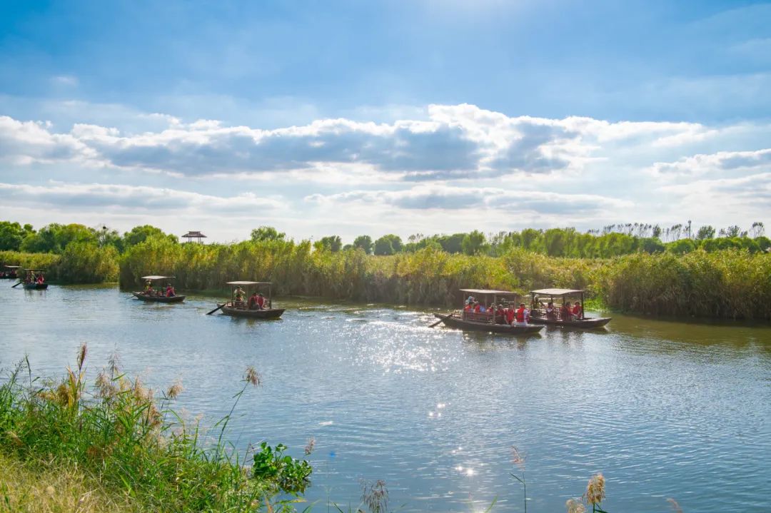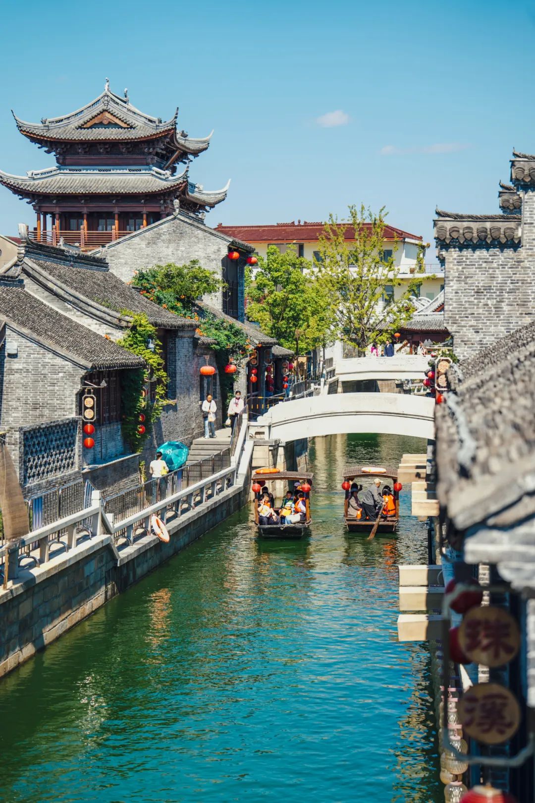 两岸的白墙黛瓦与秋日的蓝天相映成趣