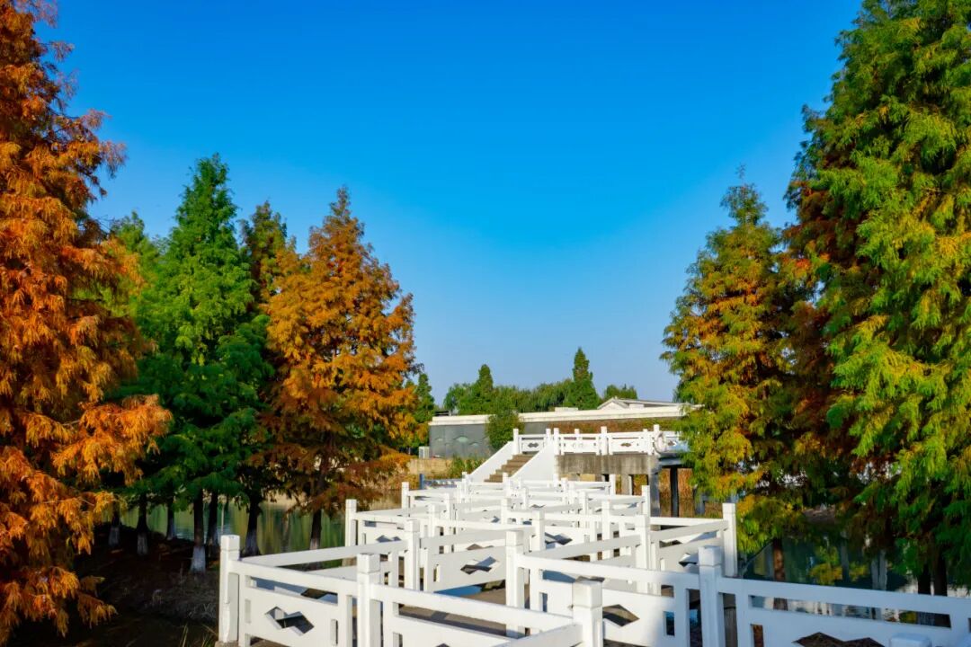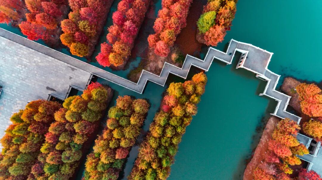 层林尽染的水杉林在大纵湖湖畔诉说秋的诗意与浪漫。