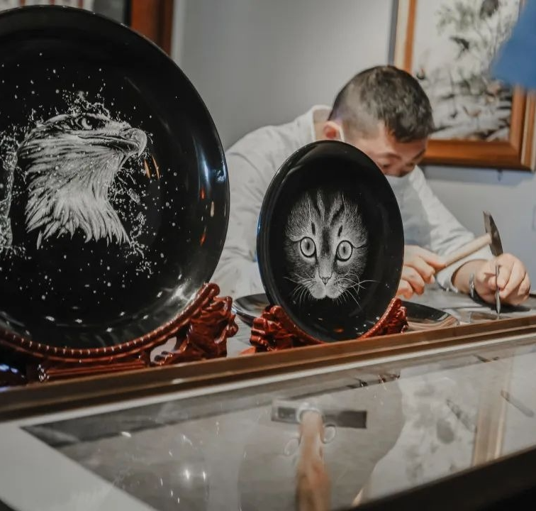 既有洒脱的书画笔墨之韵,又有浓烈的金石雕刻之趣。用钻刀在釉面上刻画,无疑是硬碰硬,稍有不慎就会破裂,对创作者要求极高。因此在民间,能掌握这项技艺的人更是凤毛麟角。