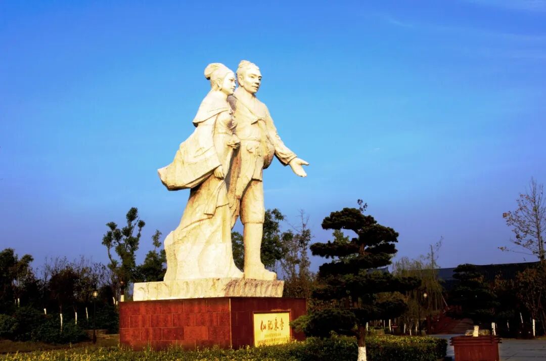 据清代刘积兰《彭城堂笔记》记载:西汉时山东巢州有一农女叫张七妹,随父逃荒到东台西溪,见董永卖身葬父,感同身受,就嫁给了他。家贫无食,七妹把藏在怀中的一张“蚕子”孵化、饲养。后四乡八镇广为推广。七妹织绢偿债,操劳过度而亡,遗有一子一女。乡亲们很怀念她,就附会她是七仙女下凡,后归天庭。