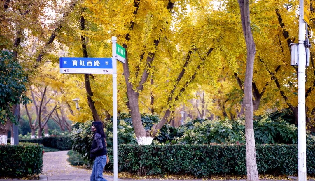 五一河公园,银杏树排列成行,金黄色的树冠如同一把把撑开的华盖,为过往行人遮挡了初冬的凉意。行人们漫步在这条金色的长廊下,有的驻足欣赏,有的拍照留念,每个人的脸上都洋溢着幸福和满足。情侣们手牵手,低声细语,他们的影子在阳光下拉长,与银杏树的影子交错,编织出一幅幅温馨的画面。
