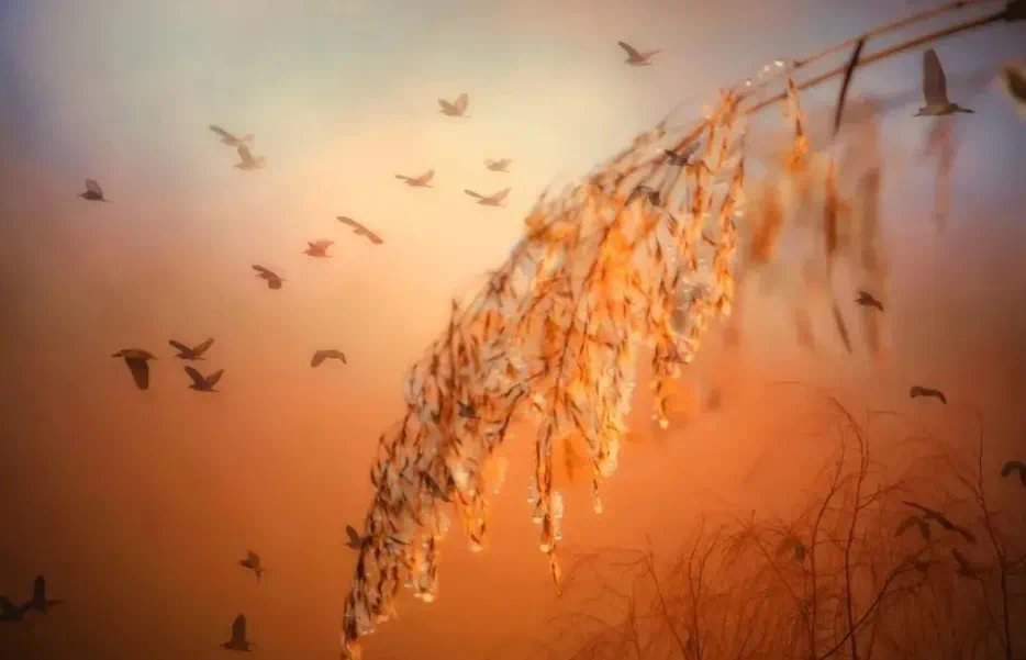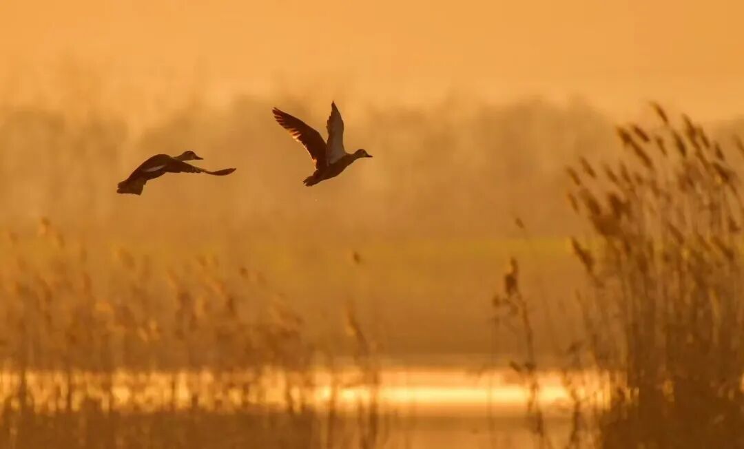 在夕阳的余晖下演绎着属于它们的舞蹈
