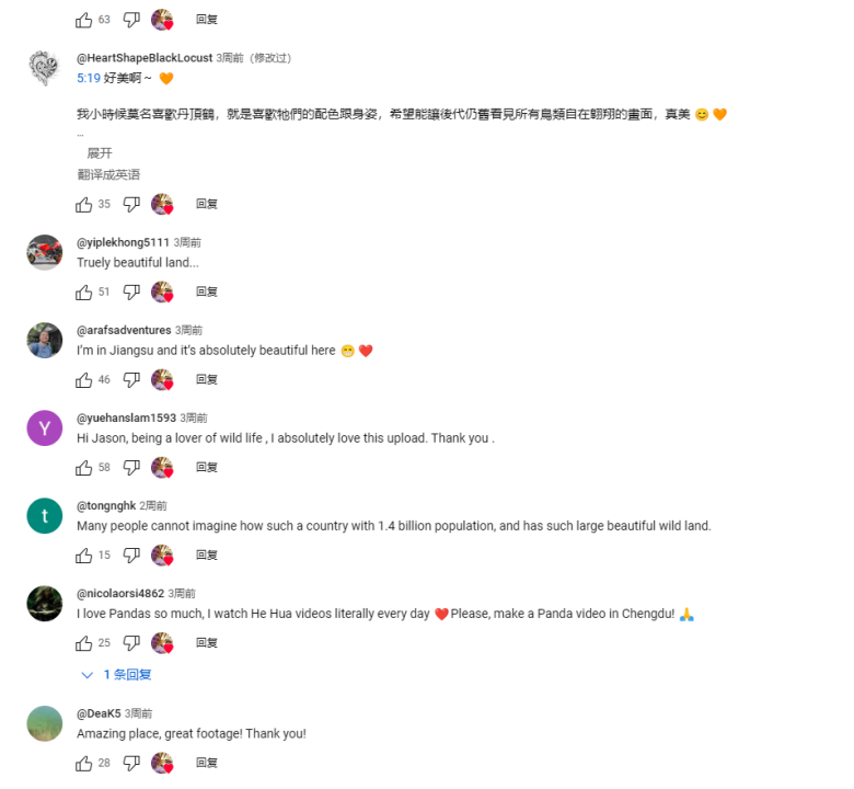 英国网红博主 Jason 更是化身生态“引路人”,来到丹顶鹤湿地生态保护区,了解丹顶鹤的生活习性和迷人风采,探索奇妙世界。他感慨,丹顶鹤与国宝熊猫一样黑白相间的配色,是中国传统文化的独特象征;他眼中的惊叹与喜爱,是对保护区最好的赞美。不少网友纷纷跟帖热议,“太酷了”“nice”” Let’s go”。