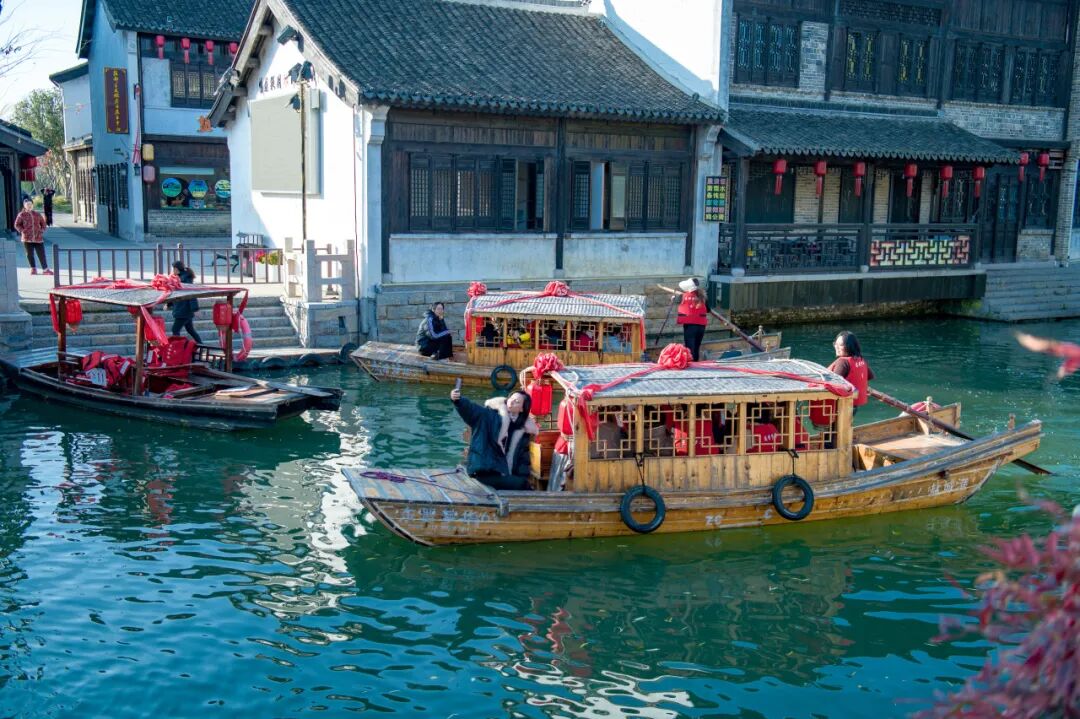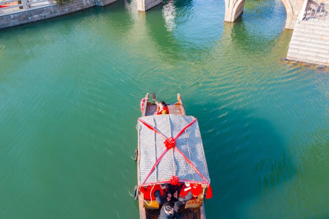 悠悠摇橹 乘上摇橹船 于水城的河道上缓缓前行 船桨轻摇 划破平静的水面,泛起丝丝凉意 此时的湖面仿若一块绿色寒玉 在冷冽的空气中散发着静谧的气息