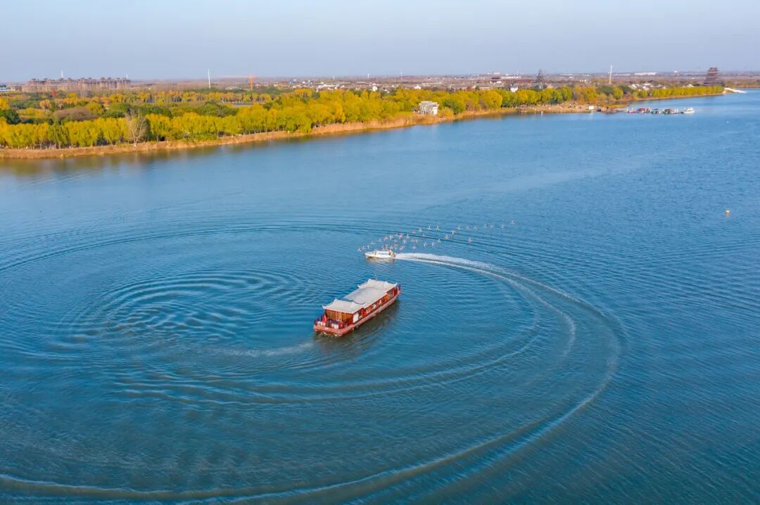 赏鸿雁伴飞 初冬,外湖码头的鸿雁伴飞表演 是绝对不容错过的精彩 鸿雁环绕着画舫船振翅高飞 在天空中划出优美的弧线 与大纵湖的蓝天碧水相映成趣 让所有人都沉浸在这美妙的瞬间