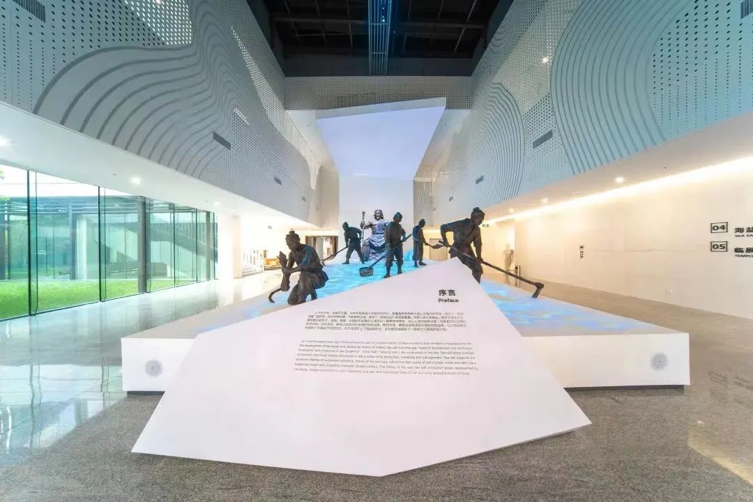 博物馆里介绍海盐文化的研究成果,收藏陈列我国海盐历史的文物和资料,博物馆采用蜡像、雕塑、沙盘等演示手法,展现古代“炼卤煎盐”“晒海为盐”等海盐生产和盐民生活的多层文化场景。