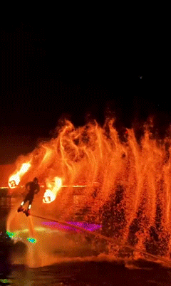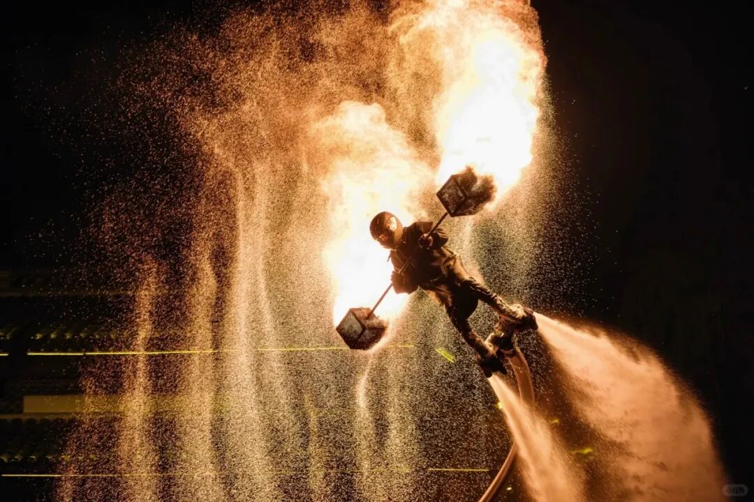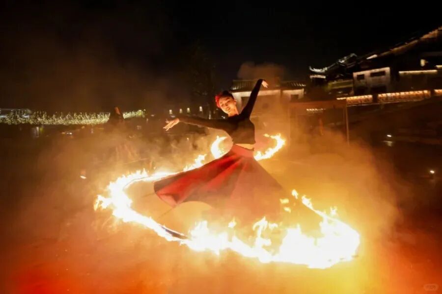 当火壶遇上水上飞人,火星在黑夜中咆哮,火花在星空中绽放。当火焰遇上旋转舞者,夜空被划破,星光被掩盖,邪气被驱逐。