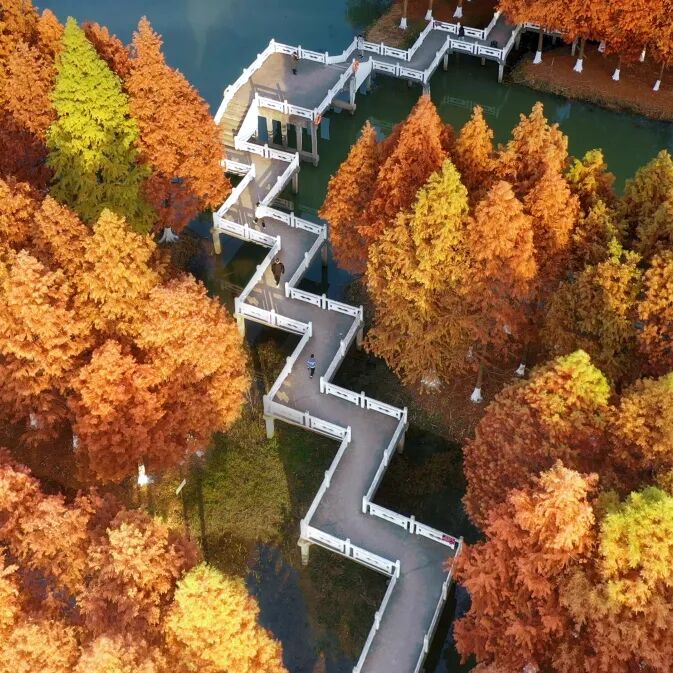 大纵湖景区 漫步在大纵湖景区,呼吸着清冷而新鲜的空气,感受冬日大自然的静谧,即使在冬天大纵湖景区依旧展现着它的独特魅力。 冬日的大纵湖水杉林完成了蜕变,阳光照射下,焦糖色的水杉林,闪烁着迷人的光芒,走进这梦幻般的水杉林,仿佛踏入了一幅动人的油画之中。