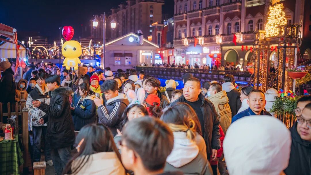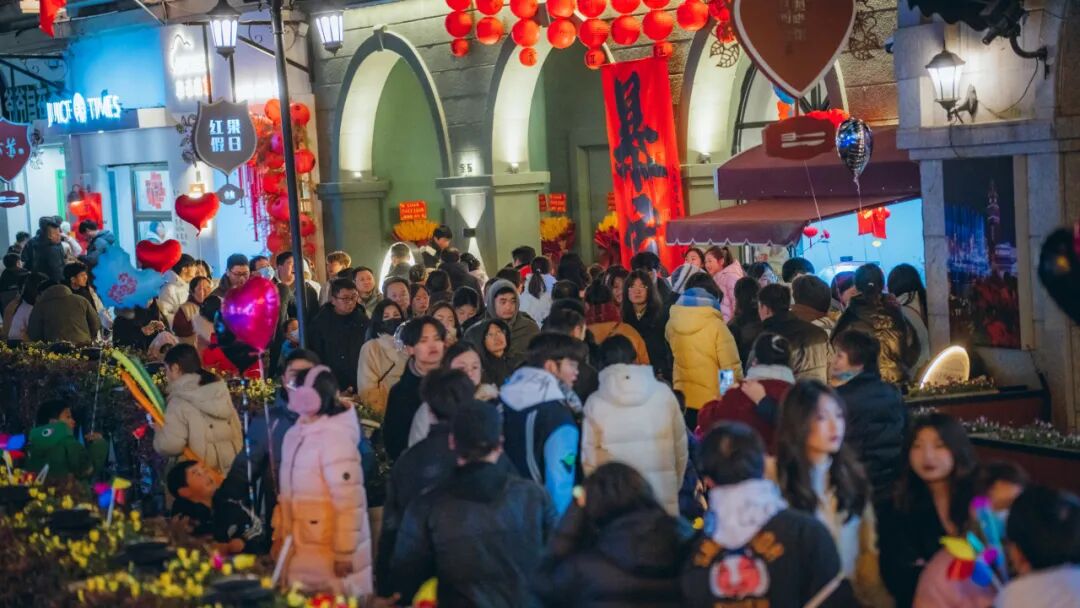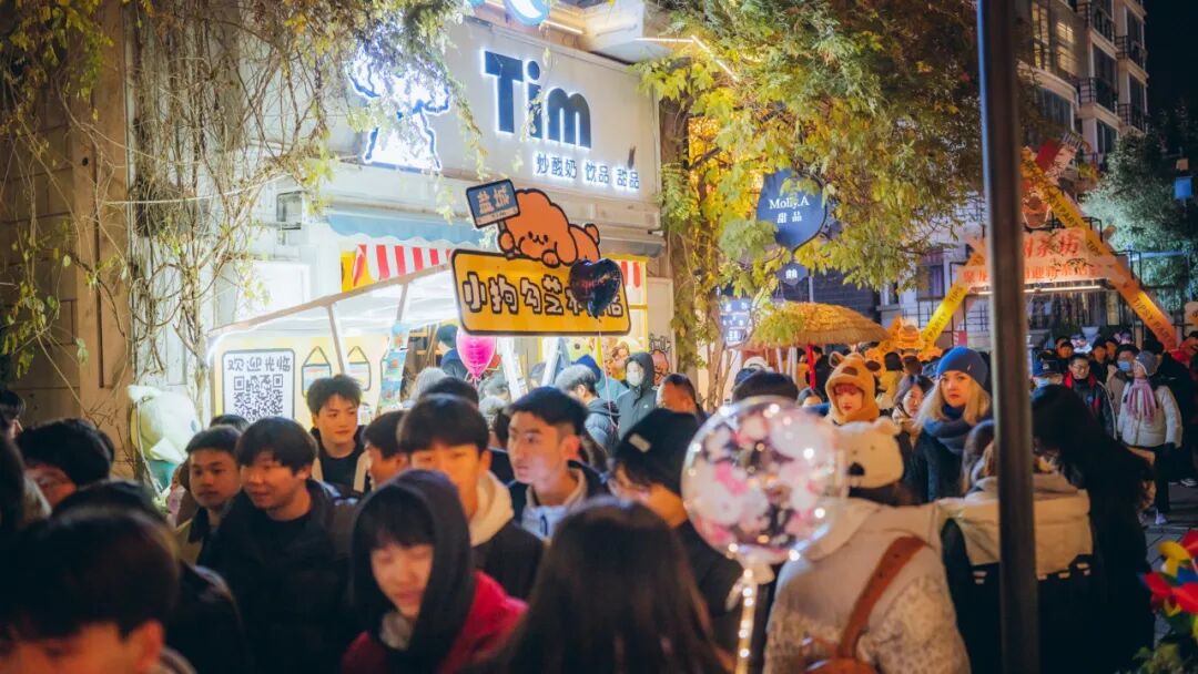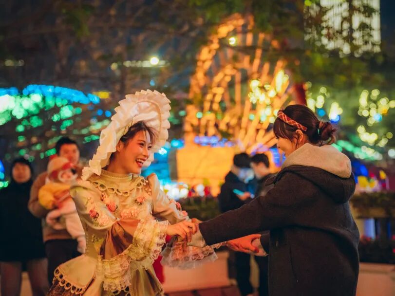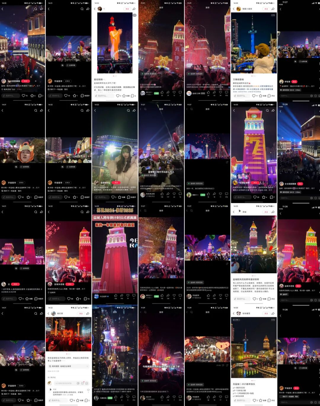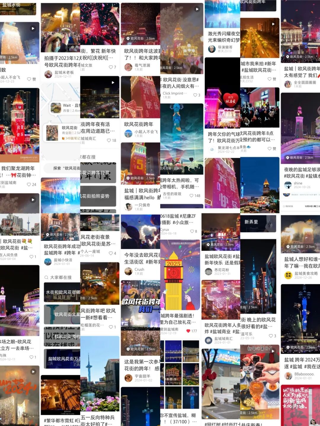 “在欧风花街一起迎接爱与自由”“一半盐城人都去这里跨年了吧”“在欧风花街跨年太快乐了”等打卡笔记如潮水般涌现社交平台。