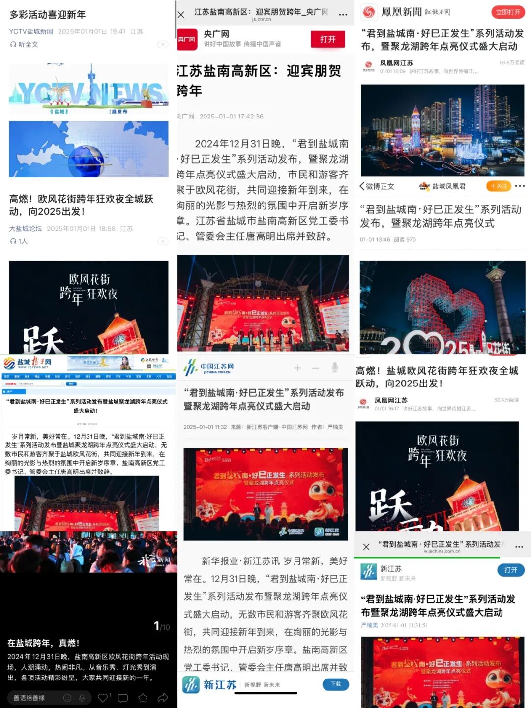 新华日报、中江网、江苏电视台、荔枝网、扬子晚报、现代快报、央广网、盐阜大众报、盐城广播电视总台、凤凰网纷纷发文聚焦跨年夜活动。