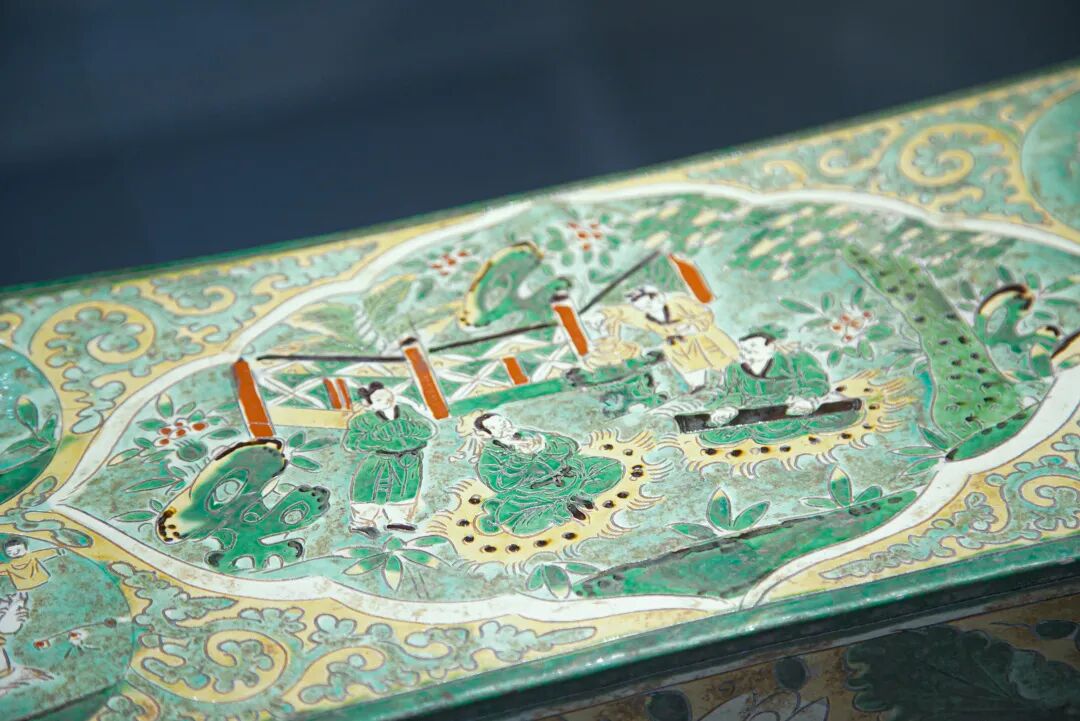 如今,亦雅亦俗、清新多彩的宋代生活早已远去,但这件三彩枕上所描绘的人文风俗、市井文化、人物服饰、园林建筑等各种历史风貌,足以带我们穿越时空,重温宋风遗韵。