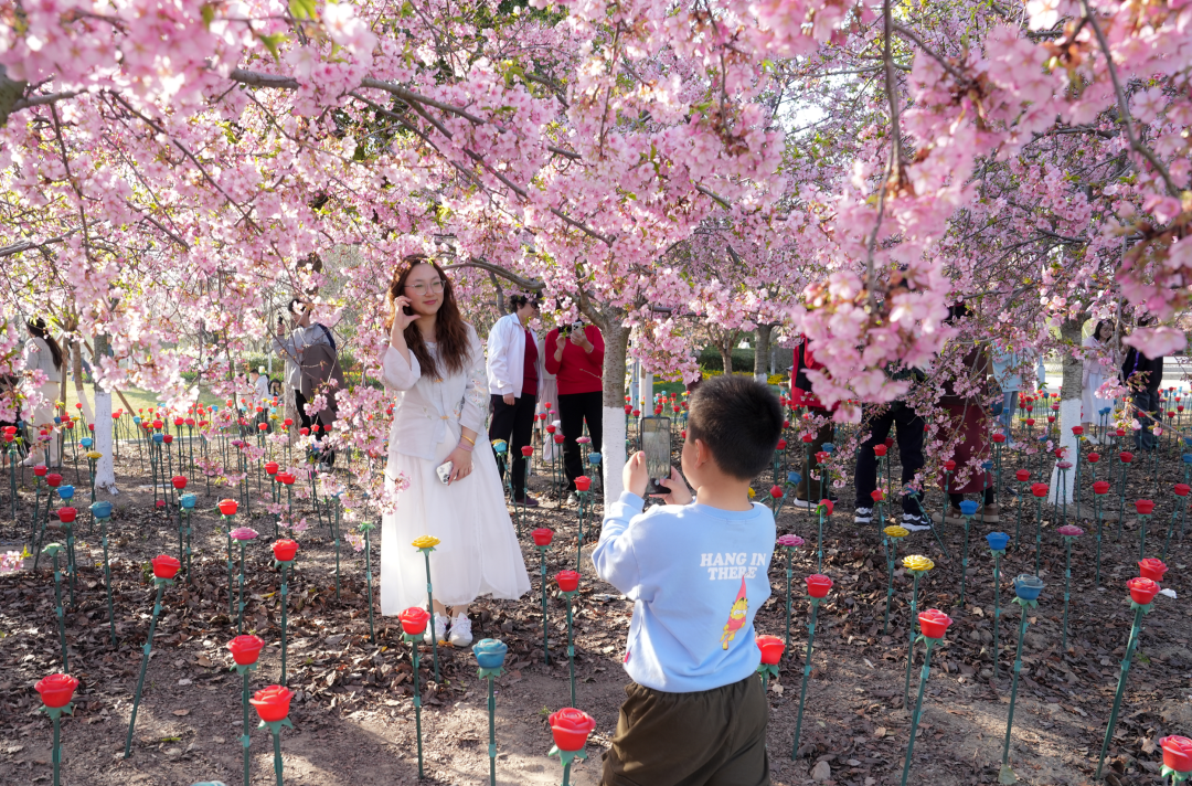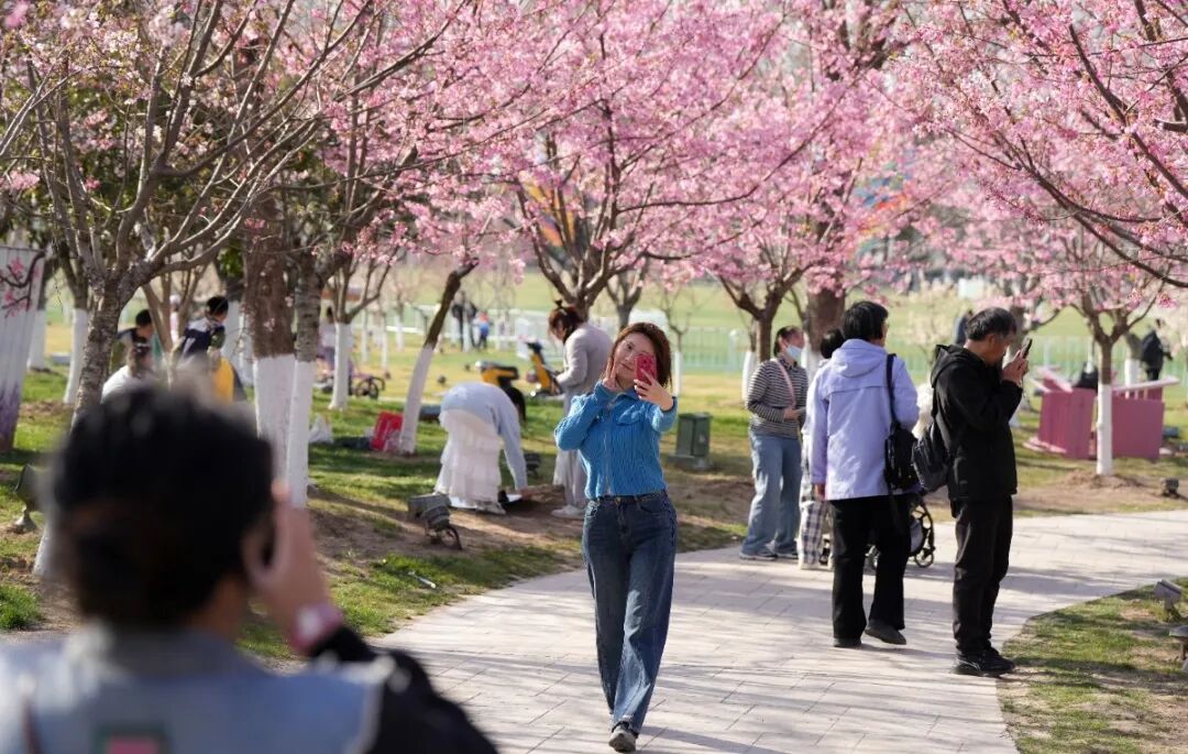 烂漫樱花与如织人潮在大洋湾景区汇聚