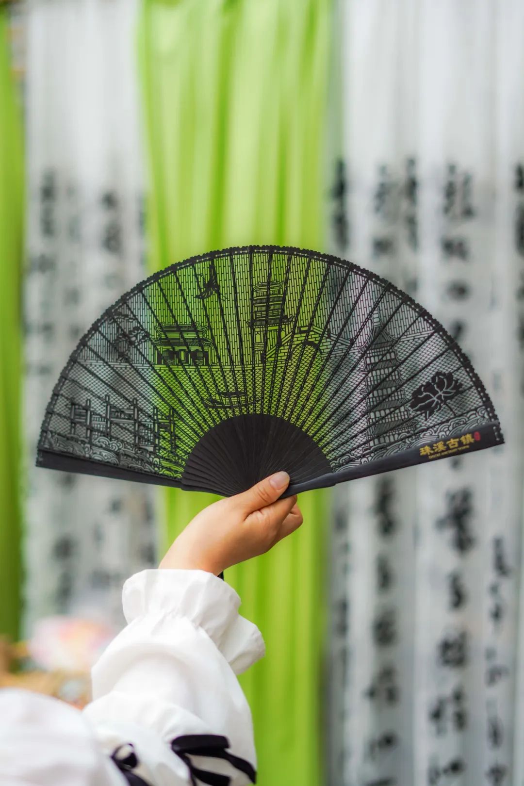 古镇地标镂雕扇,扇面上细腻的图案,不仅展示了匠人的高超技艺,更融入了珠溪古镇的市楼、文庙、魁星阁元素,镂雕工艺刻画出精致古风的木雕香扇,轻轻摇曳仿佛能扇动起一段段珠溪古韵往事。