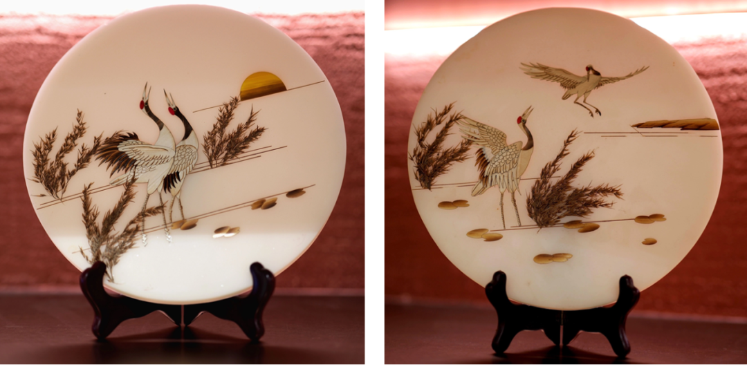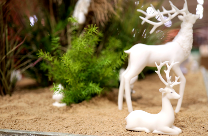 麋鹿、丹顶鹤、勺嘴鹬被称为盐城的“吉祥三宝”,以“吉祥三宝”为核心元素融合时尚艺术形式进行盐雕创意设计,将“吉祥三宝”悠闲雍容的神态和动作展现的栩栩如生。