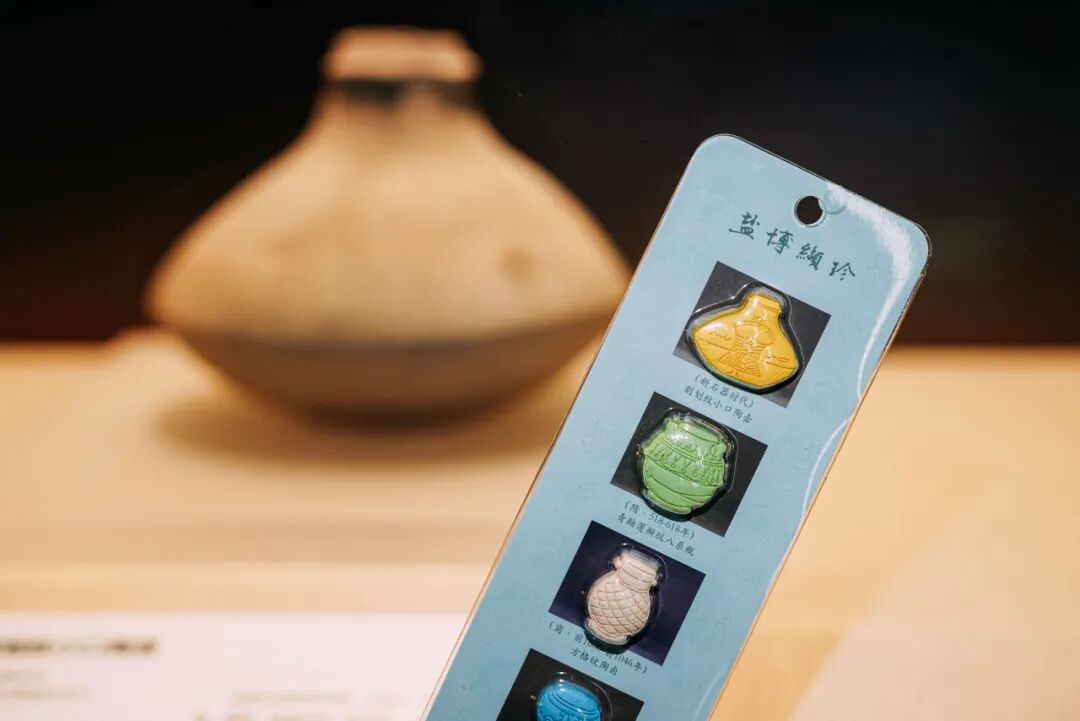 “刻划纹小口陶壶”“祝其亭玺”“方格纹陶卣”“切块盘铁”“玉钺”“夹砂红陶甗”“青釉莲瓣纹八系罐”……历史的印记都沉淀在这小小的一方冰箱贴里。