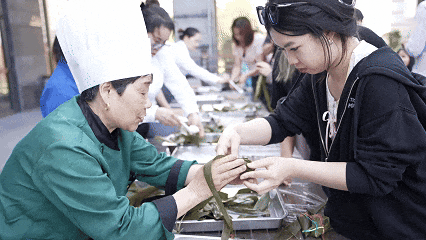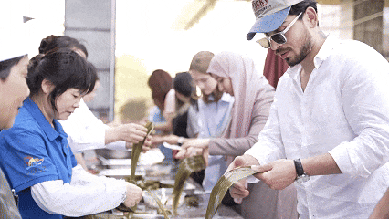 当国际友人和咱们本地包粽高手同框,会擦出怎样的火花?活动现场专门设置了 “包粽擂台赛” !手把手教外国朋友卷粽叶、填糯米、穿粽针,不仅体验了一把传统包粽的乐趣,更能感受文化交融的奇妙魅力。