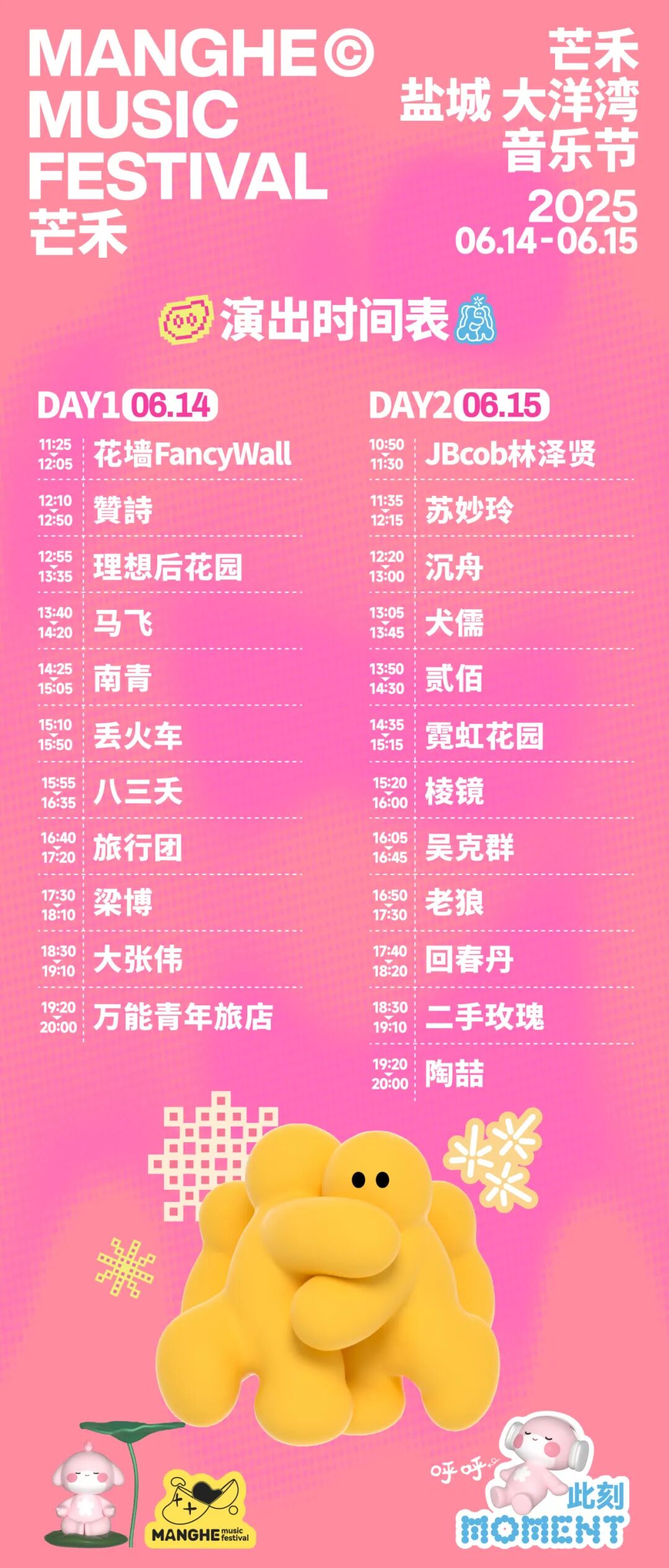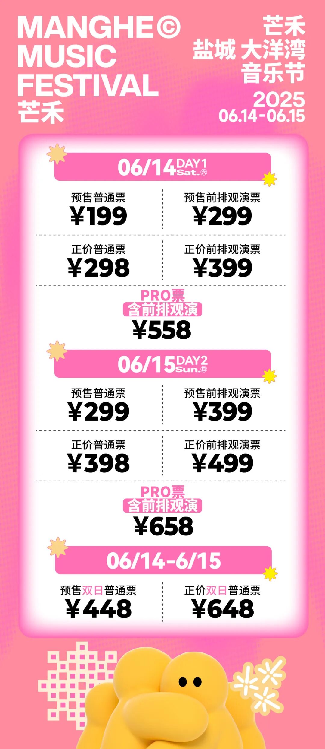 • 本次音乐节【官方购票平台】为:in现场、芒禾小程序、大麦、秀动、美团猫眼、票星球、小芒票务、抖音。除大麦网外,其余所有官方购票平台将于6月14日12:00停止售票。