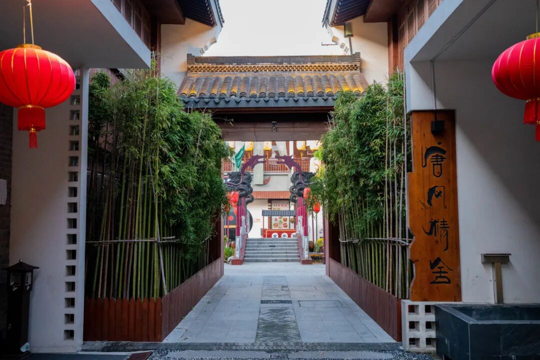 唐风精舍是大洋湾景区唯一的民宿酒店,在大洋湾景区南门处的唐渎里内,是一座木质结构的唐风建筑,穿过热闹的美食街便可寻觅到。